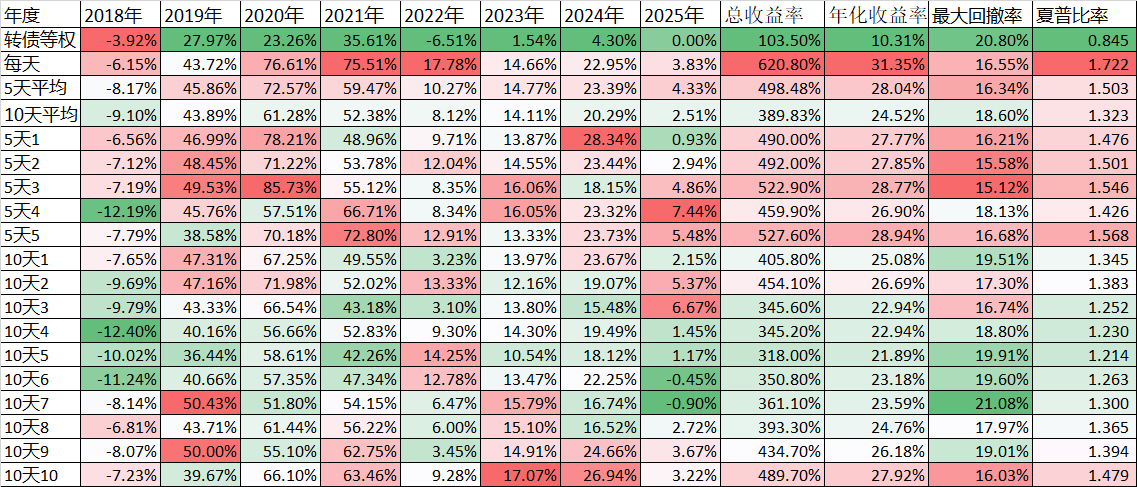 另外值得注意的是,70天策略在今年不到2个月时间里是亏了1.93%,而A500本身今年的涨幅是2.82%,而今年最佳的30天策略,去年却跑输指数。再仔细看,不管N取多少,总有跑输的年份,所以量化不是神话,量化投资说到底是一种概率优先的策略,短期跑赢跑输都有可能,我们是要看长期跑赢的。