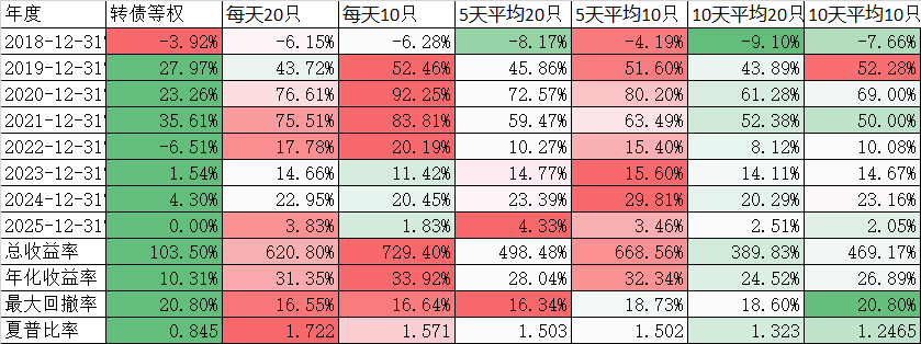 当然有人说我现在用激进的无阈值策略,到了回调的时候再用保守的策略。但这个事情是知易行难的事情。如果我真的有这个能力判断,那在回调前还做什么保守的可转债策略,干脆一步到位做空,至少也可以买点债券或者黄金了。关键还是我没这个能力择时,只能退而求其次。