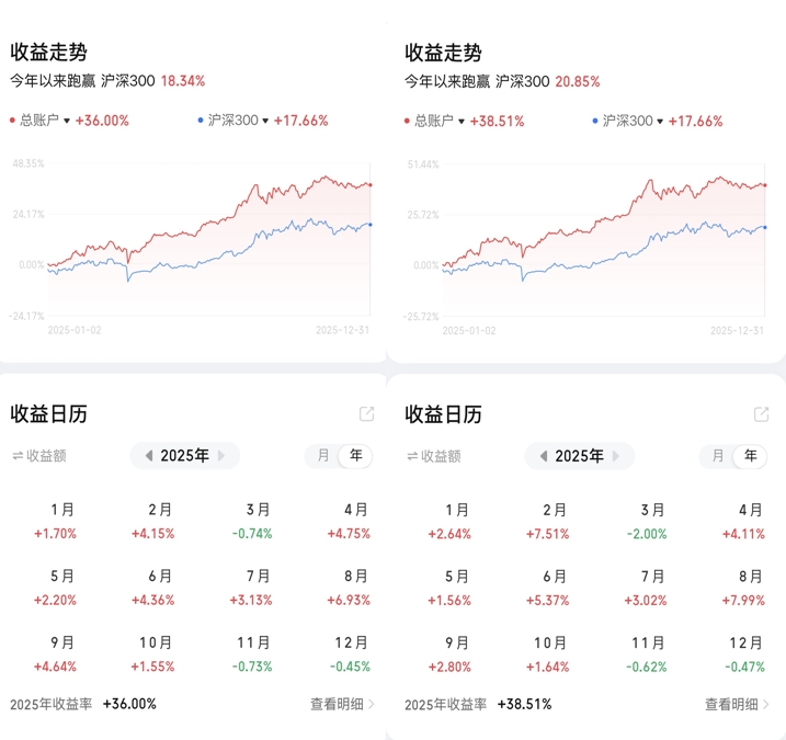 账户二:日+1.09% 月-0.42% 年+36.04%