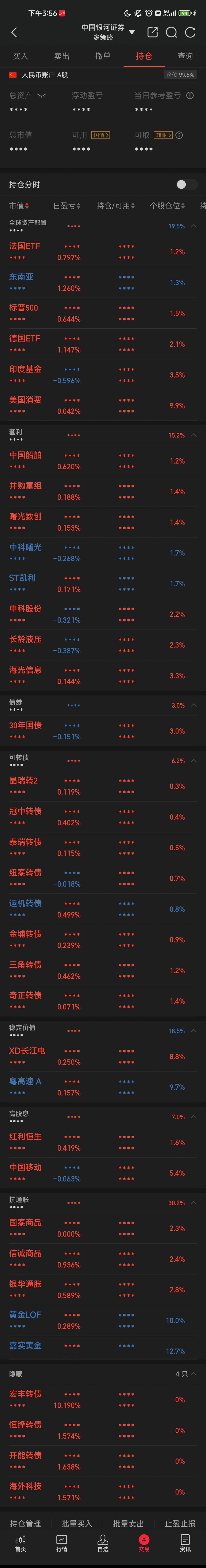 "以黄金+公用事业筑底,通过全球化ETF分散风险,用可转债和事件套利捕捉超额收益,呈现稳中有攻的防守反击型风格"