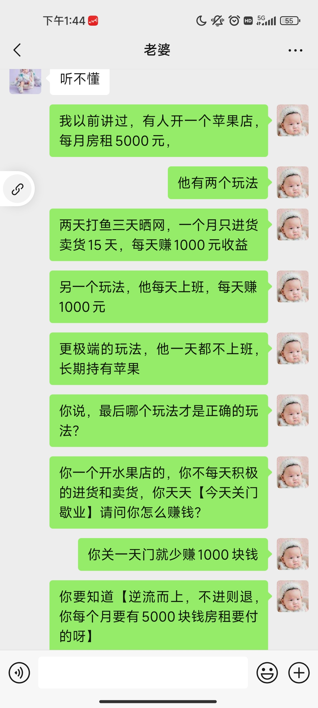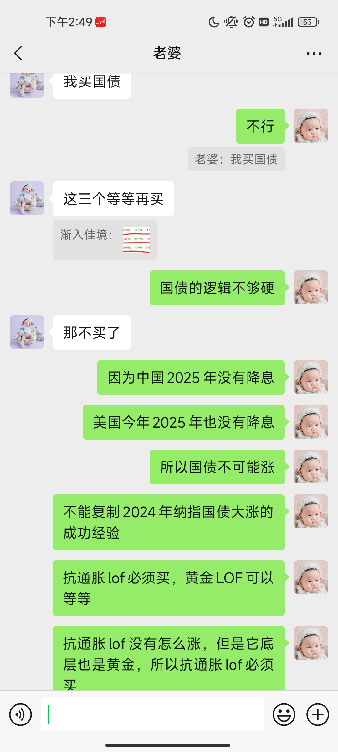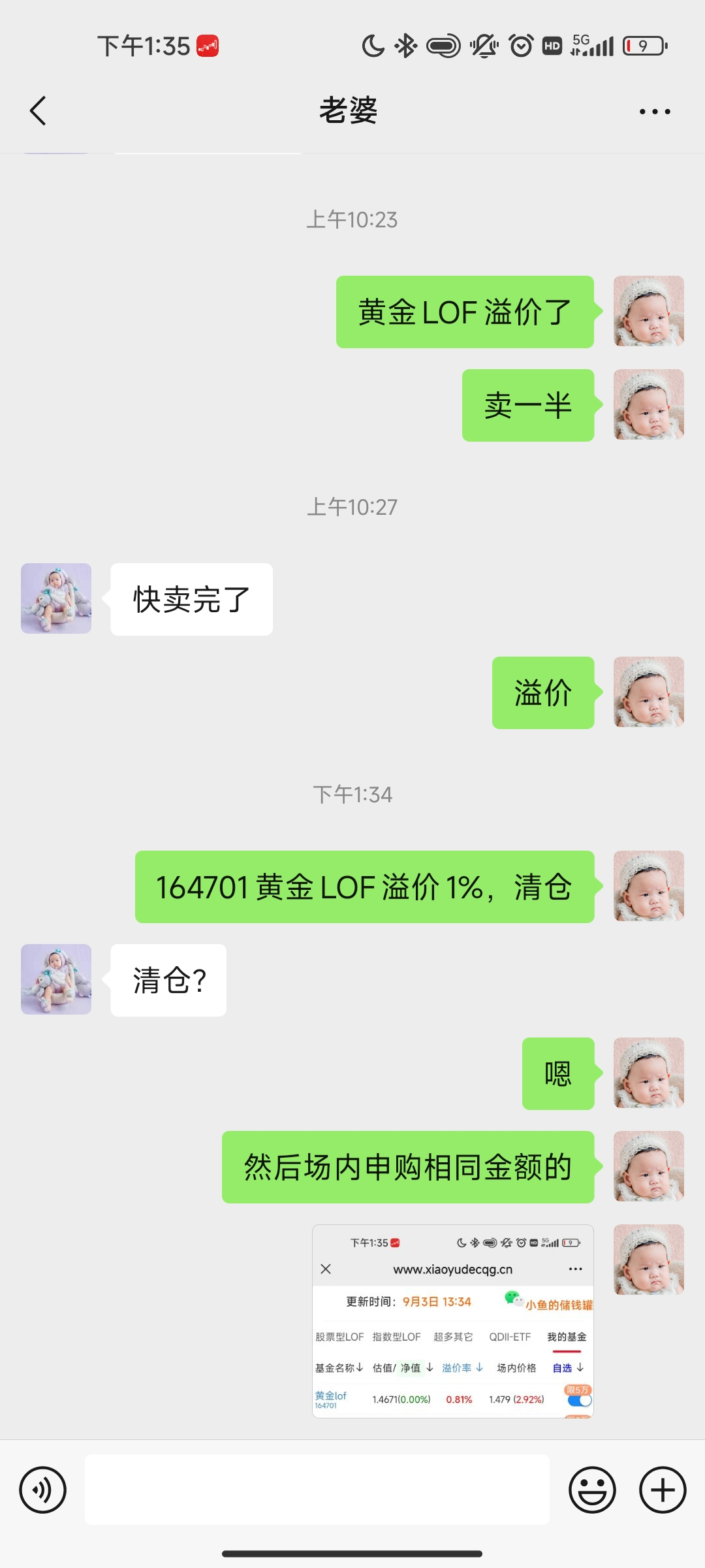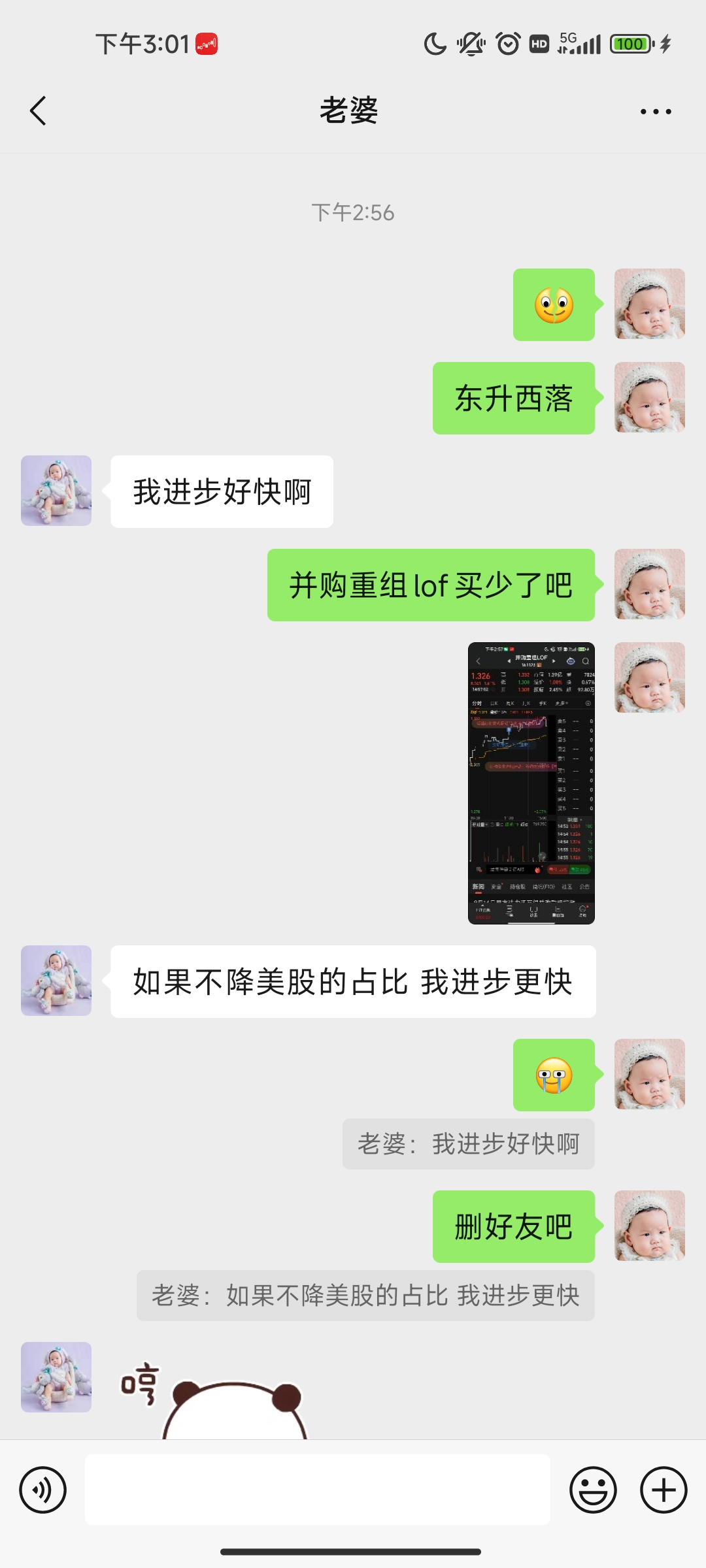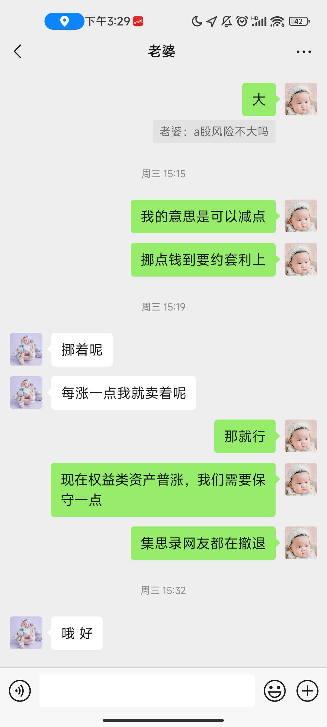 10月:十一期间港股涨疯了,人人期待开门后所有指数全部涨停一直维持到收盘。结果所有人都只猜对了开头,被挂在了山顶。这一波牛市拯救了所有的A股股民,包括大V们,以前被我嘲笑的老师他们慢慢的回本并超越我将我狠狠的甩在身后(可怜的我还抱着熊市思维死拿高股息,后来证明接下来几个月高股息一直跌。)。10.15:为了国金证券的免五权限和两融开户,我这几个月在国金证券经历了堪比2月份的深V,累了,回本清仓,把资金挪回银河证券(因为可以开拖拉机,国金证券/华西证券他们申购基金都不打折)。10.23仲景食品又送香菇酱啦。10.26昨晚跟群友聊了聊,结合我在回家路上的思考,我可能不是交易员这块料,准备交权了,把事情交给擅长的人。这半年多来,身边的朋友和网上的朋友都在笑话我跑不赢老婆,我一开始都是当玩笑,我也经常回应说下一年就交权。今天慎重的考虑了这件事,我心态真的不够好,患得患失/频繁交易/无法操作大兵团,网友说我擅长的并不是亲力亲为而是发现机会并知人善任,我想了一下我可能只能玩10万一下的资金,超过10万我的心态和能力就跟不上了。这样也好,大钱交给老婆,我只当军师(相当于基金公司的投研团队),交易交给老婆/私募(基金经理+交易员)。