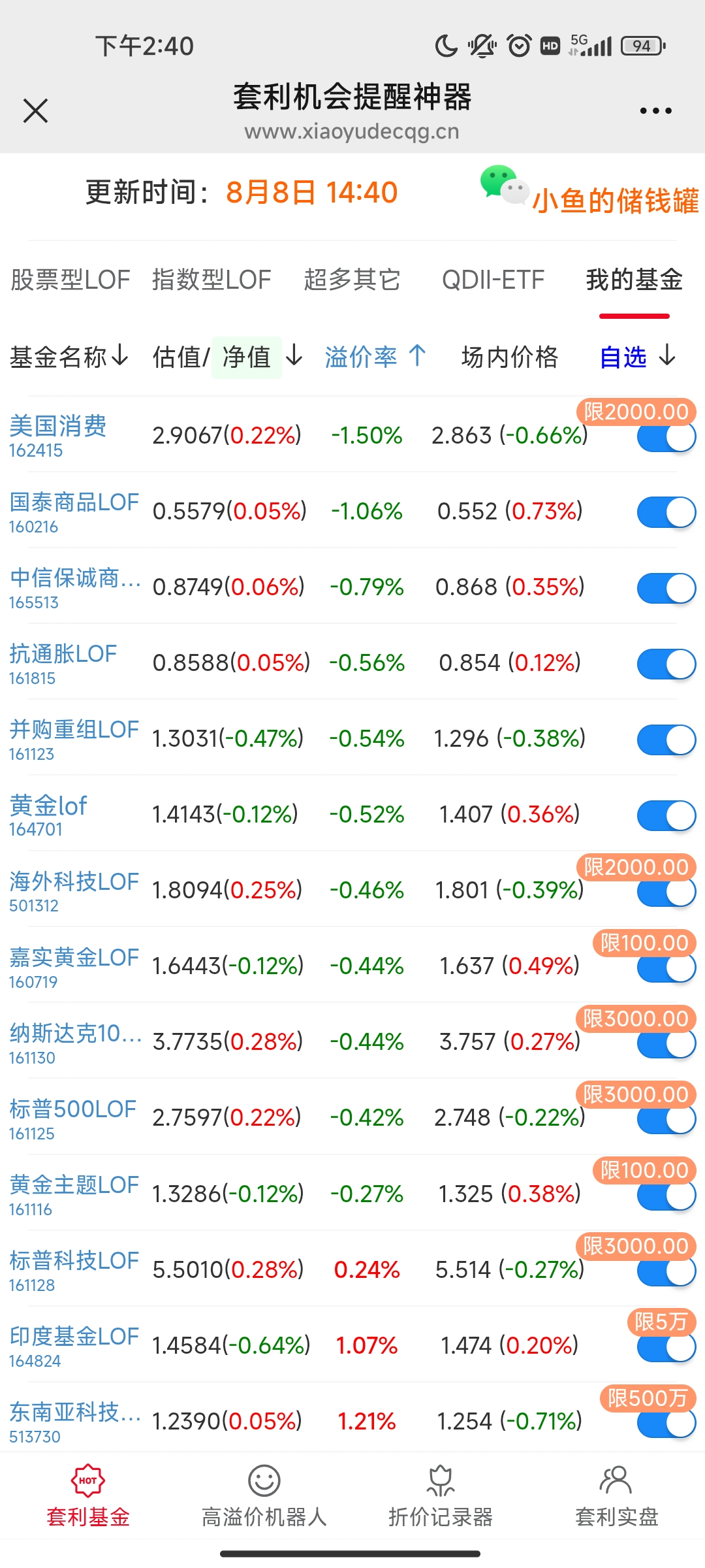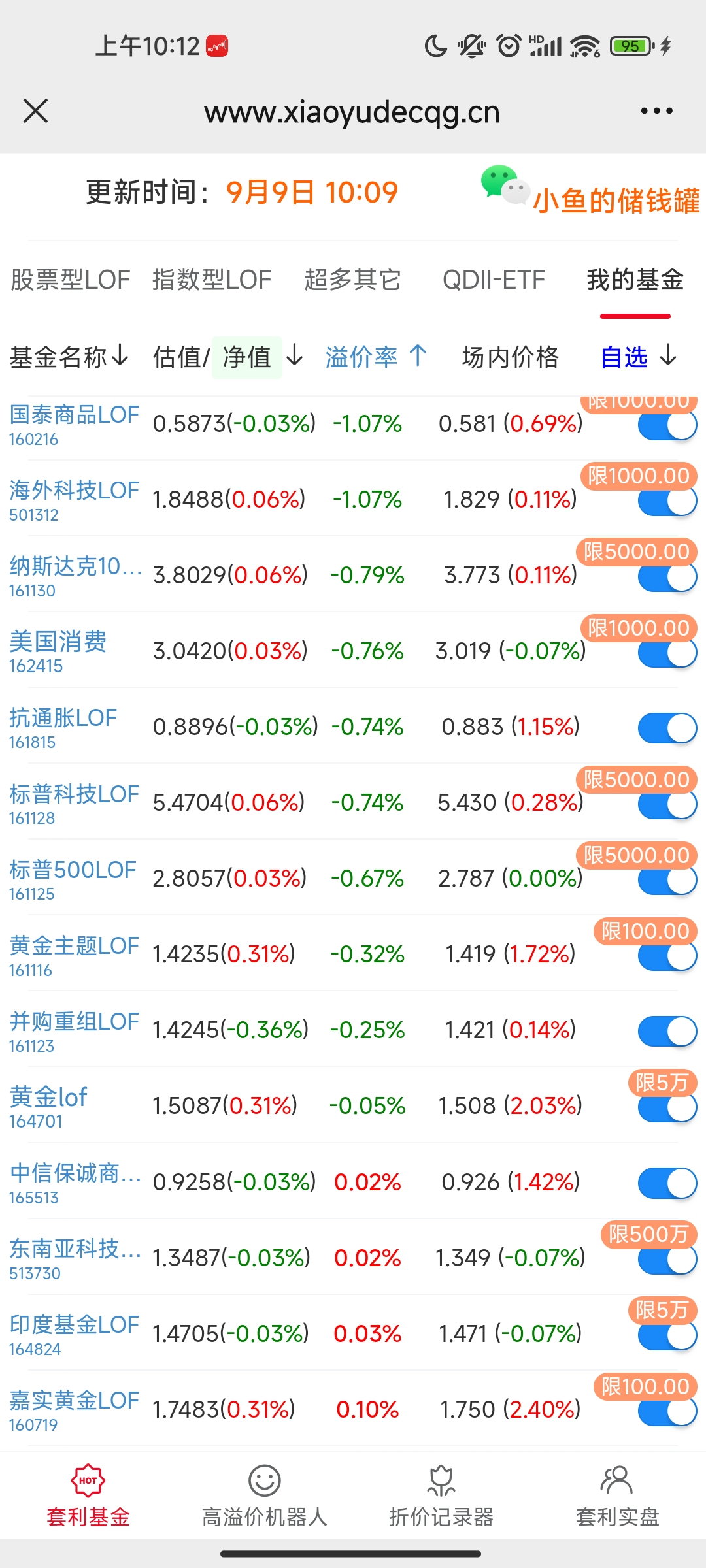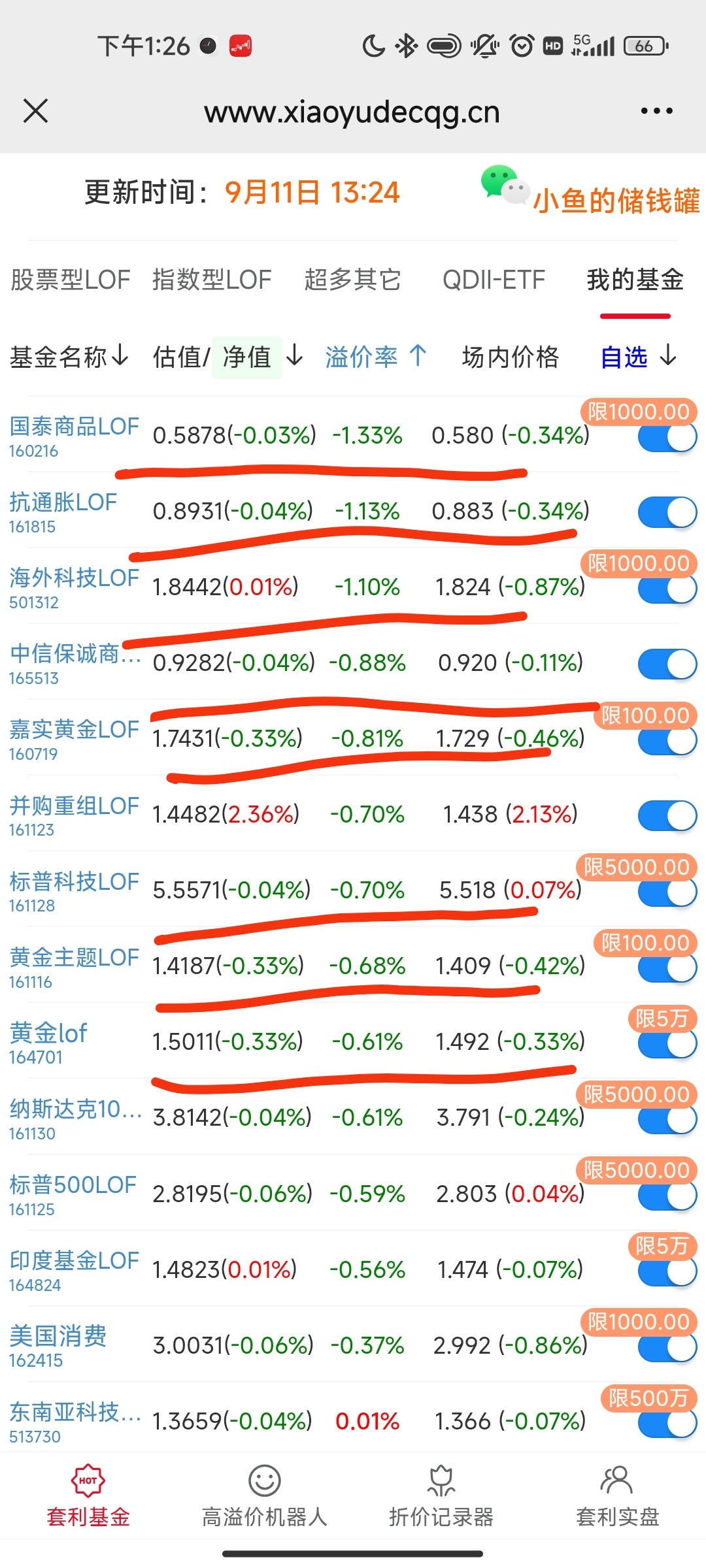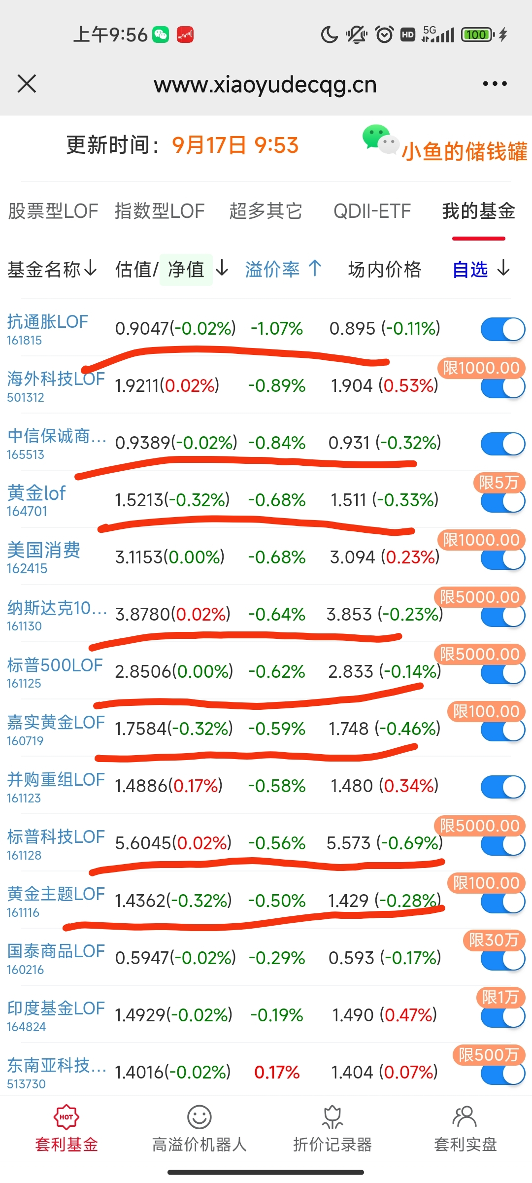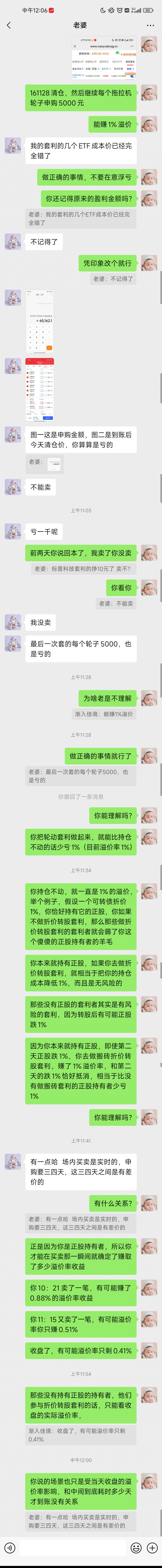 11月:11.4第一次在港股打新,辉立证券孖展没有额度了,只能打个免费签晶科电子玩玩啦(没中)。11.7美国大选结束,特朗普我们熟悉啊,接下来的四年投资计划就太简单了:allin美股。我给我老婆的建议是:大跌大买,小跌小买,不跌不买。四年不卖。11.8号:融资融券两融账户使用1股薅一把上市公司的礼品羊毛。11.11号我投降了,开始买中证2000ETF,后来换成低溢价可转债(10%仓位)来代替小市值仓位。11.15:带老婆开通银河证券融资融券以及去律所见证开户华侨银行香港卡。11.25开始我的成名之作:QDII溢价套利,这一天就发现了美国消费LOF基金/海外科技LOF基金,一开始只申购了几千块钱,11.27我申购了14万美国消费LOF,我老婆申购了11万美国消费LOF。后面这2个基金帮忙赚了一万多块钱,而其他几个限购1000的标普科技纳指LOF什么的也吃了一点小肉。