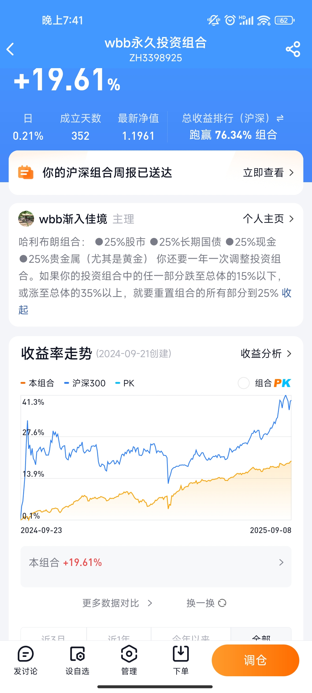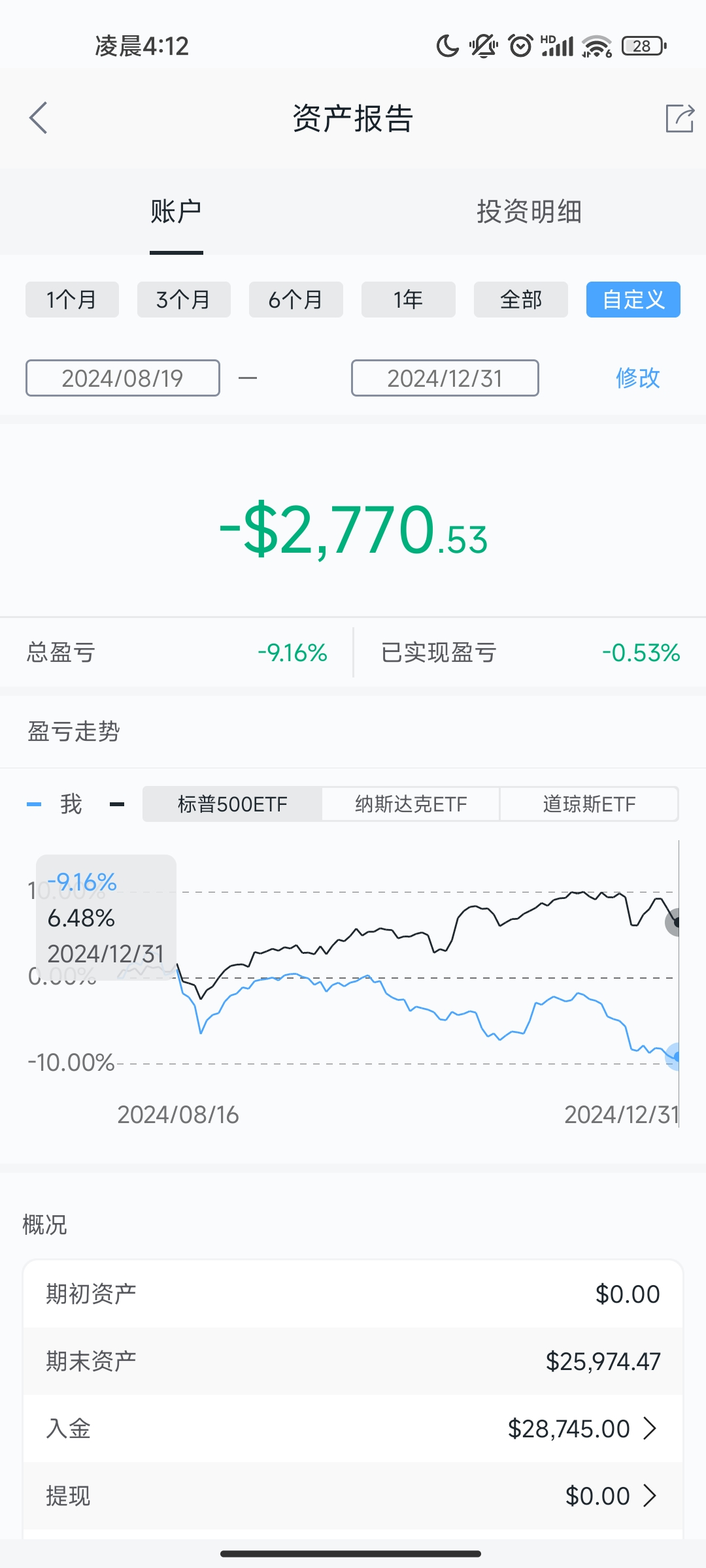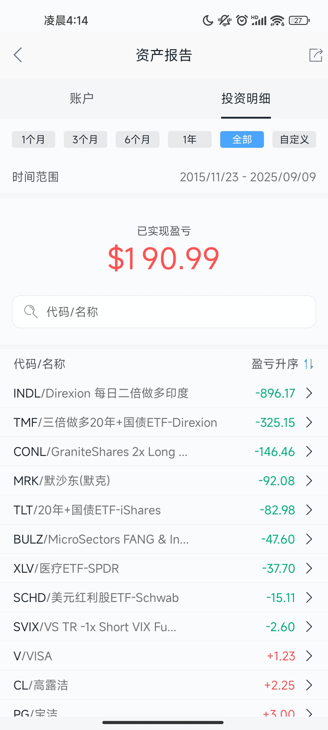 8月:8.1号发现之前把公众号删掉的太干净了,每天好无聊就又把注销老师的公众号关注回来了,其实他早期的文章和思想讲的已经很明白了,现在公众号的内容确实有点划水了。8.6感言:我还买了做空波动率的svix,因为我相信,恐慌是暂时的,一切都会过去,在历史的眼光看都是小波澜,剧烈波动不是常态,低波才是。纳指会新高,印度会新高,比特币会新高。我昨天还思考了,杠杆ETF我要在这几天美股暴涨之后清仓,换成1年期的期权,磨损小,杠杆高。我现在趁着本金小,不断的拓展我的武器箱,把该犯的错误都趁本金小犯一遍。昨天我老婆心疼的纳指盈利大幅缩水。我,一个经历过2月份亏了一年IT程序员工资的人,现在看看这点波动,毫无感觉,完全可以作为过来人的角度宽慰昨天崩溃的人。书中自有黄金屋。读书使人明志。我先用杠杆ETF磨炼胆子,昨天手都是抖的,现在想来还心有余悸,信仰是有的,但是手抖。我怕我辛辛苦苦半年薅的港美股券商开户赚的几千块钱都被我昨天一天亏完了。我昨天忽然想起来群友疾风劲草只薅羊毛不玩股票了,当时后悔莫及。但是事已至此,我只能硬着头皮加仓买杠杆ETF,其实没赚多少钱,昨天转的1.6万港币,说是赚了10%,其实只有200美元。但是我实在是不忍心开盘-350美元,我还是要忍住恐惧去追逐信仰,去实践,去验证想法思路。趁钱少,犯错成本低。努力拓展思维思路。我昨天撤出小市值之后,今天居然没有想法再买回来了,真好。我忽然想起来书上说的:如果你不知道该不该割肉,那就思考一下,如果你本来就不持有它,你想不想买它?我今天买回来的是高股息,买了唐山港,粤高速,中海油,长江电力,苏租转债,洪城转债,说明我对大a有一个信仰:国家队把人把钱往这方面驱赶,我要和国家队一个战壕。我再也不要买垃圾了,什么一天1个2个3个涨停票,有个屁用,不照样没回本。垃圾就是垃圾,炒小炒新的时代过去了。昨天把红利低波100ETF也清仓了,同样今天没有兴趣买回来它,真好,知道自己并不是真的想持有它。如果没有昨天的冲动清仓,我想我还会继续每天对这些【非真爱】来回浪费时间浪费精力浪费手续费还不挣钱还亏钱的无意义操作和担忧上。2024下半年会很难,9月份美国降息后纳指最少会回调9个月,a股只会跌更多。清仓了a股,白天就清净了,拿着这些高股息,可以安心上班工作生活。9月份把美元账户里的股票全清仓,换成tmf期权,也不需要操作,最少可以半年不需要盯盘,不知道我能不能执行我的这个简单策略,如果能达到一半的执行程度我就谢天谢地啦。因为我明知道正确的路在哪里确还是忍不住去分散策略。8.9号感言:美股账户新高。8.11回复网友:a股只持有高股息票了,或许等a股牛市再回来是一个不错的选择。8.12笔记:成长,才是买入的理由,估值最多只能当做筛选条件。8.13第三次回到水面上。8.15:中国工商银行换10万港币,工商银行手机APP直接【境外汇款】汇港币到恒生香港银行卡。8.15:把雪球上关注的所有人都删了,把早就不更新的雪球组合也关停了。我天天泡着群里show收益图,虽然都是真实的,但是确实很惹人厌,我准备去雪球show图去显摆去嘚瑟,那里的网友不会惯着我。我可以尽情的发泄我的情绪而不打扰人。8.16我退出了我一手建立的粉丝群:一年多前,我在几个集思录网友的建议下搞了一个讨论【多策略再平衡】的群,我无数次在群里说我从群友身上学到了很多东西。现在我越来越发现这个群快成了我一个人的独角戏做秀场装逼画面。我无数次说过我不喜欢戴面具,而且喜欢报喜不报忧,和魏斌杰的口头禅【亏麻了】高情商不一样,我亏就是亏赚就是赚,恰好a股这段时间萎靡不振,我太能显摆了,我感受到了众怒就在我头上悬着,我已经感受到了全群的万马齐喑,只不过不好意思骂我,昨天我做出了一个冲动的决定,我就像上周一样脑子一热清仓a股一样,给自己留个面子主动退群。昨天我把雪球上所以关注的大V都取消关注了,打算在这里显摆。8.16中午我搜索了一下微信公众号怎么创建,没想到几分钟就建好了多策略再平衡小杠杆对冲,还写了第一篇帖子,真方便,我觉得这是一个记录自己所思所想的好地方,准备作为记录自己投资和生活的舞台,不需要打扰到别人的清净。8.19:挪钱到国金证券,准备qmt之旅,2023年年底开通了国金证券和qmt权限(还是之前说的原因,华西证券不允许PC和手机端同时运行qmt),当时国金证券说半年之后才能给股票调整佣金,所以就只开了qmt权限就放着到现在了,正好我上周五把华西证券的钱清仓了。8.18:我今天退了99%的投资理财群,删除了99%因投资认识的微信好友,累了,沟通是相互的,我不想当那个满嘴跑火车的劝人吃饭的老婆婆。8.19清仓所有港股券商(因为他们的每笔交易都收取平台费管理费,交易成本特别高),换成美元,一并汇款到必贝证券(后来证明从此美股交易的好运停止了,必贝证券就一直没有回本)。8.24第一次使用券商VIP通道,重仓出击要约套利宝鹰股份,后来证明亏钱了,ε=(´ο`*)))唉。8.24美股新高!A股新高!