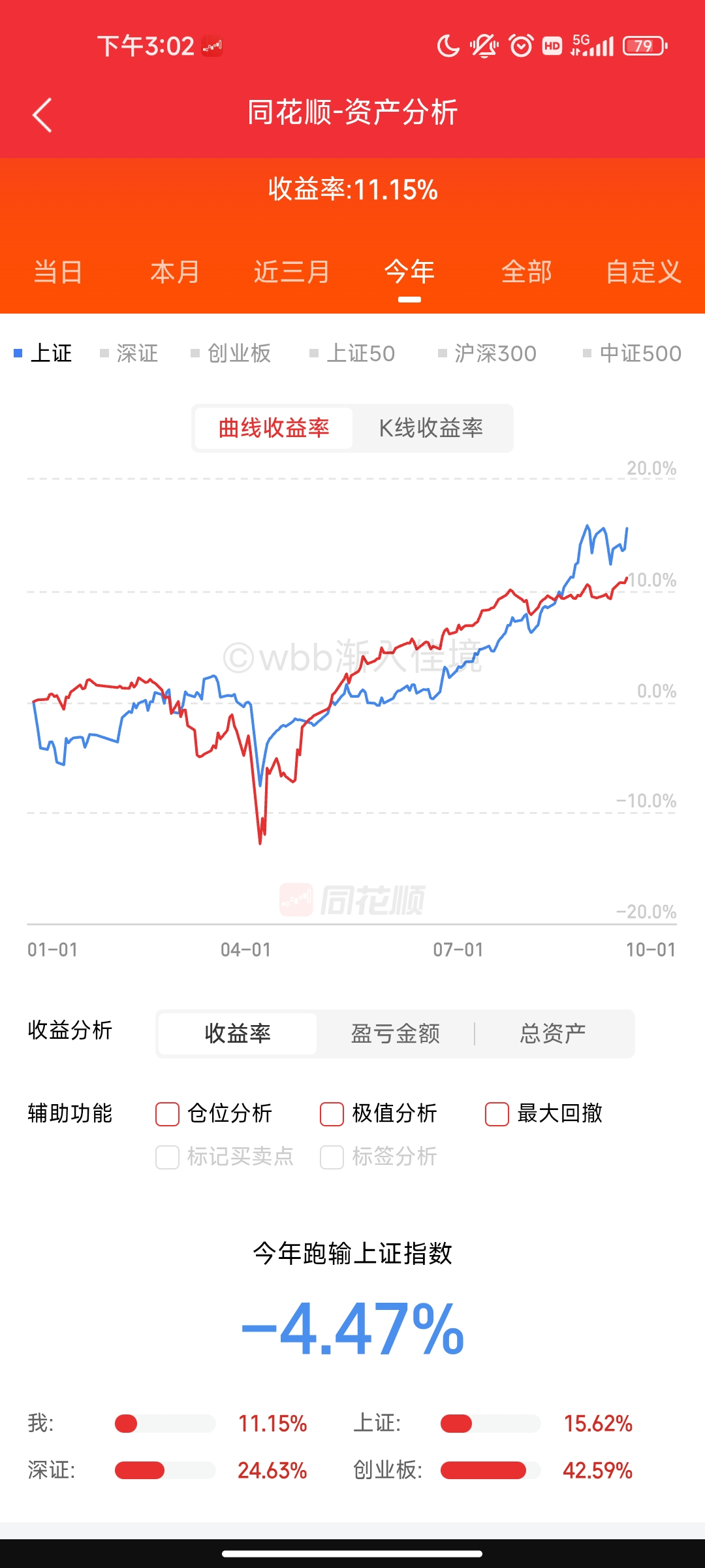 9月:9.5这两天有2大失误:1.从宝鹰股份割肉出来后,摊饼到高股息过程中,有踩雷交通银行,被【存量房转按揭】的小作文影响,亏损15%。我应该考虑割肉了。2.必贝证券上买入conl的运气用尽,每天跌幅越来越大,已经把之前从conl上赚的钱都吐了出来,我又天天加仓,其实它的逻辑不够硬,不应该加仓,我应该列一下加仓频率/计划或者清仓它,它让我睡不安稳。后来证明要是坚持下来又大赚,可惜我conl割在黎明前。9.10号A股又回到水下啦,难受。9.21发现闲话生财和我看法一样,钱流向新兴国家,那慢慢开始重仓印度基金LOF(后来证明大错特错,要不是A股账户来回和东南亚科技ETF来回薅溢价率,不然我45%仓位的印度基金会让我痛不欲生)。9.24降准+降息+降存量房贷利 率+创设新货币工具支持股票市场发展+平准基金正在研究,牛市来了,可惜我还以为和去年降印花税一样的一日游,我早早的就清仓了,第二天9.25还是觉得挺正确的,后来的日子告诉我人类的愚蠢有多疯狂,我踏空了牛市,甚至都没敢使用ETF期权。天天看群里雁总摇旗呐喊,我只能流口水。
