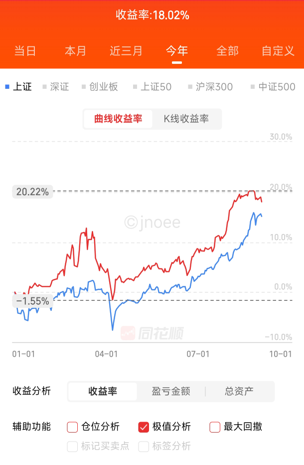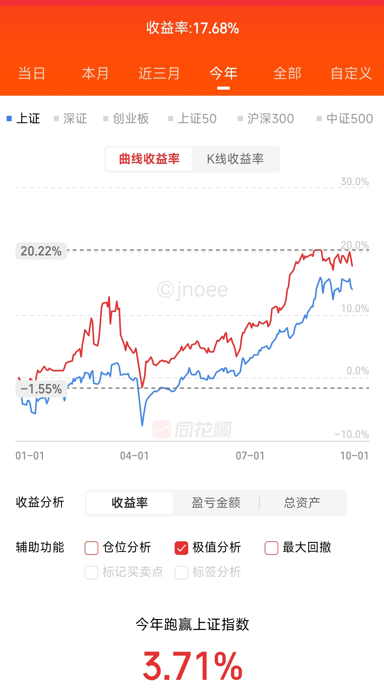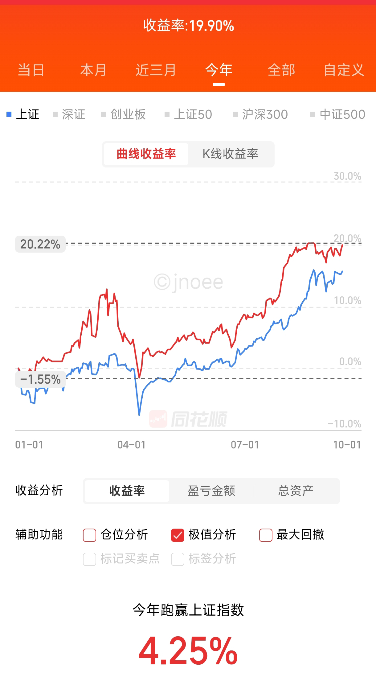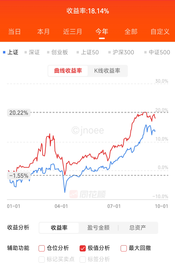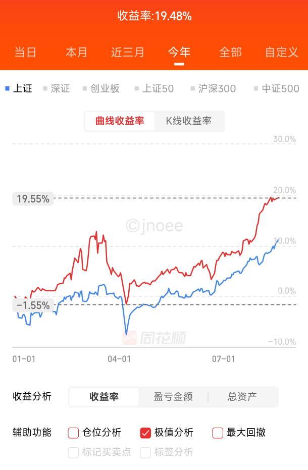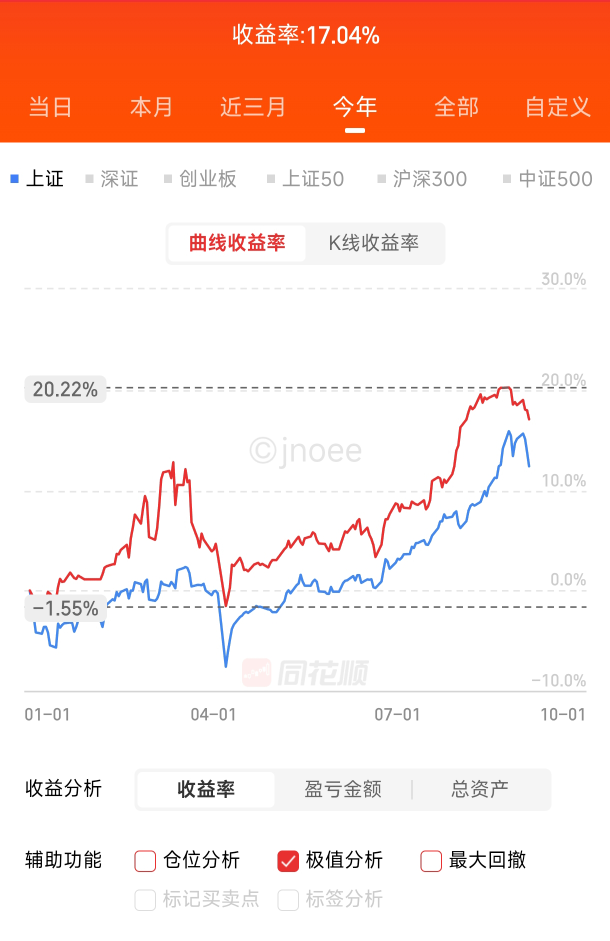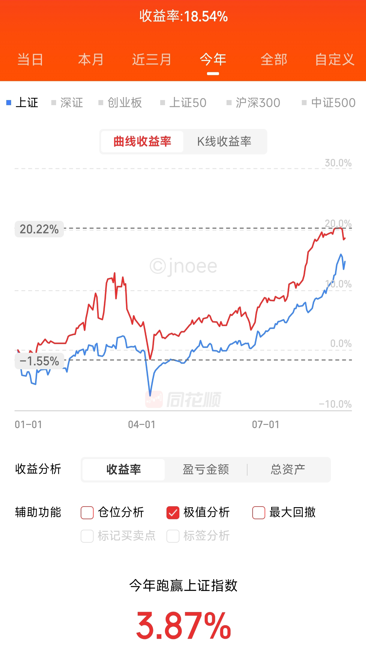 我觉得不能只盯着收益率看,牛市里新股民干死老股民太常见了,但凡敢单吊,一天就能 20%,运气好的几天就翻倍。但这种搞法显然是我不能接受的,一天能涨 20% 也能跌 20%,盈亏同源没那么容易打破。相对于盈利,我更看重的是回撤。不过牛市里确实要改变下策略,目前我想到的就是仓位一定不要太散,抓到有值搏率的机会就干一票,10%-20% 一个。