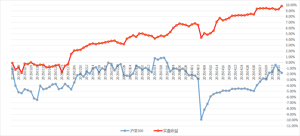 策略实盘业绩:年化收益10-15%,回撤5%左右