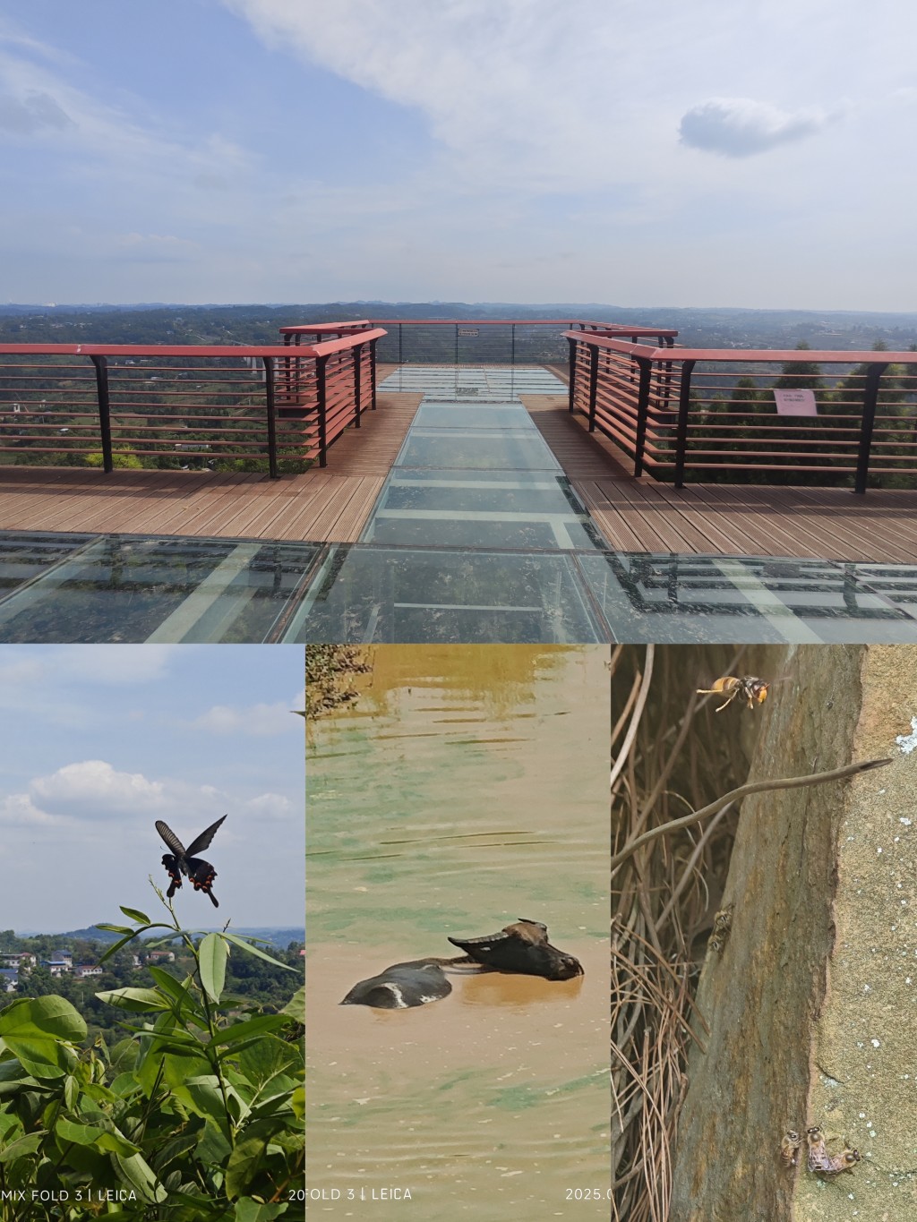 炎热的暑假终于结束,我的周中半日游也可以恢复了。本周三,我去的是仁寿的五龙山风景区。上山后,一开始青石板台阶、铺满松针的土路以及巨石路,我以为这里和多年前一样,还是一座野山;爬了一段之后,我走上了城市绿道常见的彩色沥青路,接下来是崭新的钢架悬空栈道,最后居然变成了漂亮的玻璃底栈道,令我吃惊不小;下山时我按照前人的路线,走了一段半人高的野草路,穿着短裤的我感到十分酸爽;然后我又经过了长满各种蘑菇的山坡路和曲曲折折的田埂路,最后从乡村水泥路回到了车上。除了最后一段路上的村民,我全程没有遇到一个路人。但当我回到停车场时,却发现这里新来了不少的车,音乐震耳欲聋,巨大的乡村大舞台闪动着灯光,下面聚集了一大堆人在唱歌跳舞。现在农村很多地方的风景,确实有点太魔幻了啊。