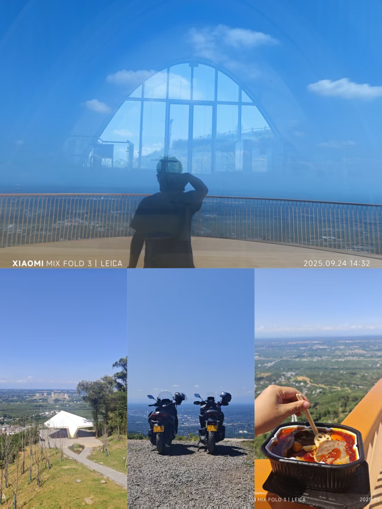 没用多久,我就爬到了山顶的长秋月观景平台,这地方可真漂亮,显然是花了大价钱修的;但尚未完全竣工,所以游人也不多。我在观景台铺上垫子弄了个自热小火锅,又加了点鹌鹑蛋和牛肉吃了个饱。然后我把头部调整到了到阴凉处,身体则留在了阳光下面,开始睡午觉。