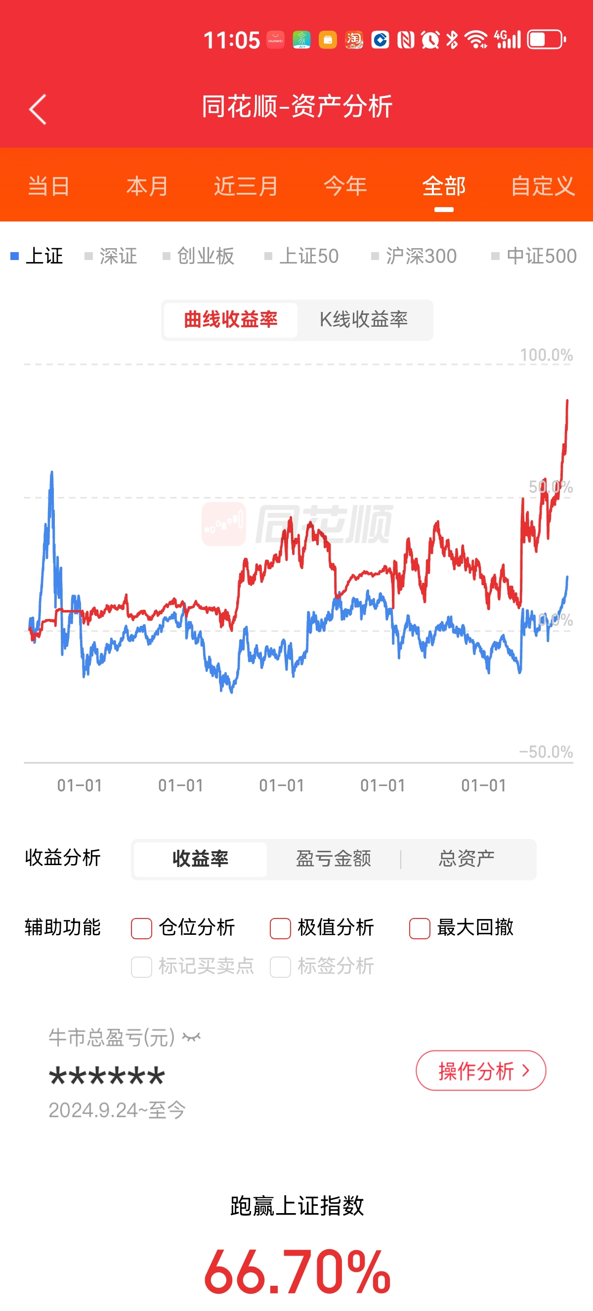 截至收盘,主账户的收益图如下。