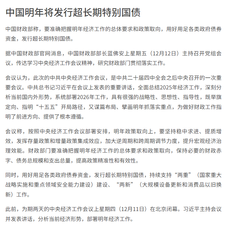 就这一条从资金层面:中央国债+省债 十五五期间的投向是两重(国家重大战略工程+国家重大安全)+两新(设备更新+消费品以旧换新)。经济的掌托人 火车头把钱投向哪里,机会就在哪里。就像我们大A炒股,资金往哪里走,哪里就涨。资金不去的地方反而还会被抽水。