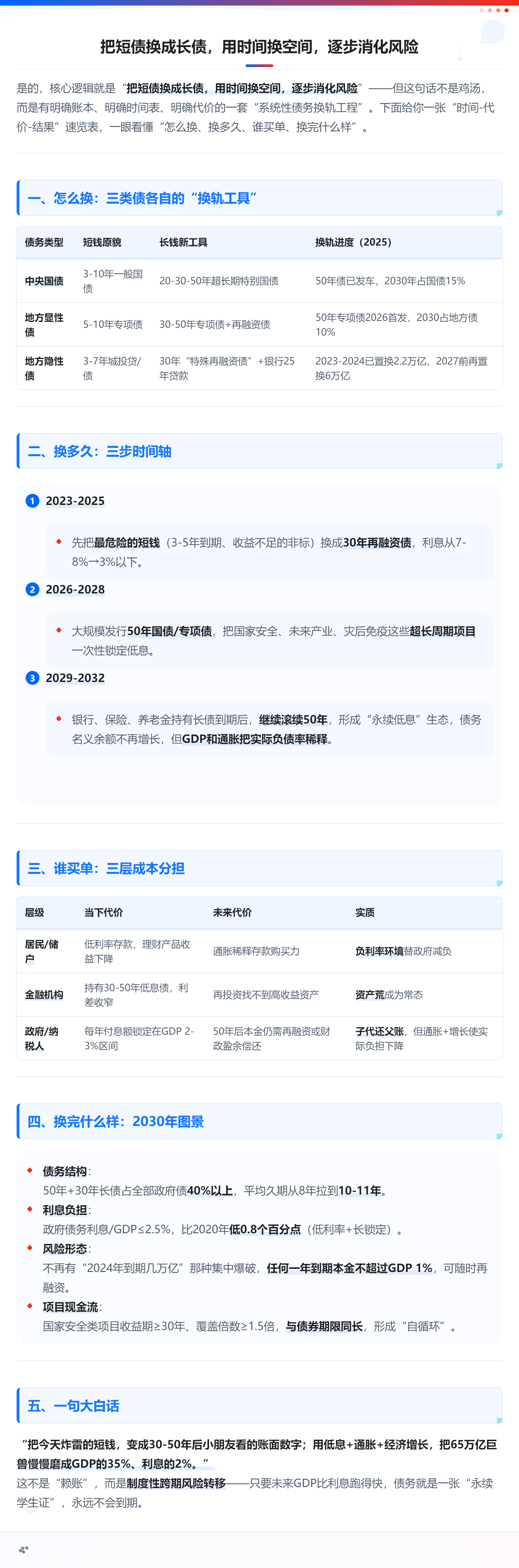 从债务周期层面:居民部门杠杆率63%起,没有再多的加杠杆空间了。房企、民企也没有加杠杆空间。地方ZF也没有加杠杆的空间。现在就中央的负债表有加杠杆空间。现在也正是这么做的,中央赤字发超长期特别国债(20.30.50年),来置换地方债。希望通过长债换短债、高利率(8-12%融资成本)置换成3-4%的低利率。后面可以盯的是中央会不会发特别国债收存量土地和存量房,把债务背自己头上,给地方和房企减轻负债,缓解现金流。