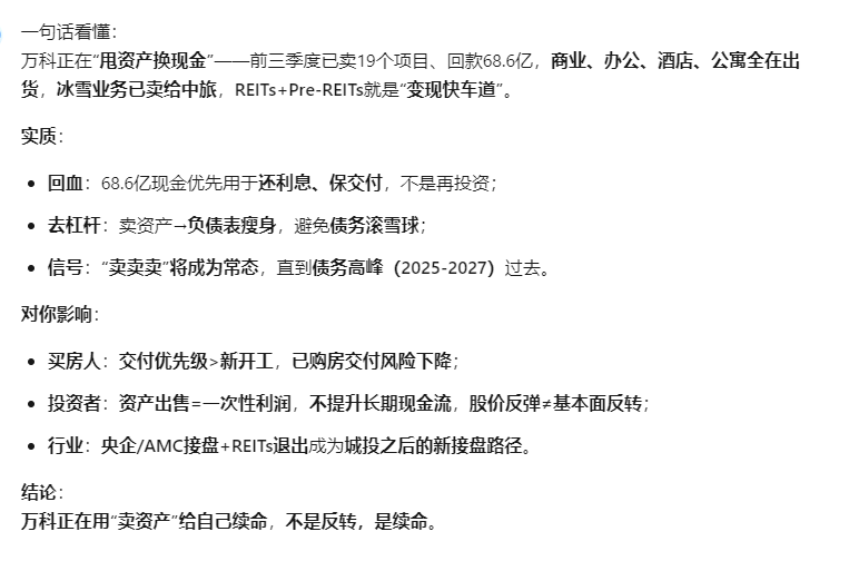 - 深圳市属国企(深铁、深业、特区建发)对万科的新增借款全部要求资产质押或项目股权质押,利率 6%–8%,明摆着“商业救助”而非“财政输血”。