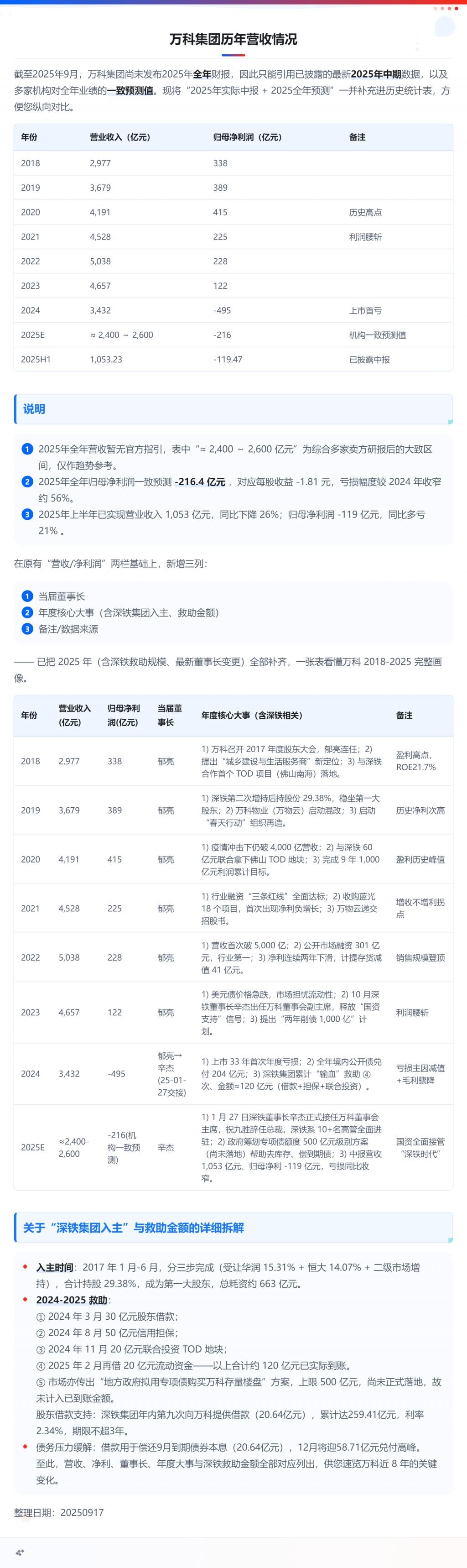 2025/11/26 万科债务风险实质性爆发,午间市场传出ZF正考虑以市场为导向的方式处理万科债务。当日晚间,万科在上清所发布公告称,将召开债权人会议讨论“22万科MTN004”的展期事项。
