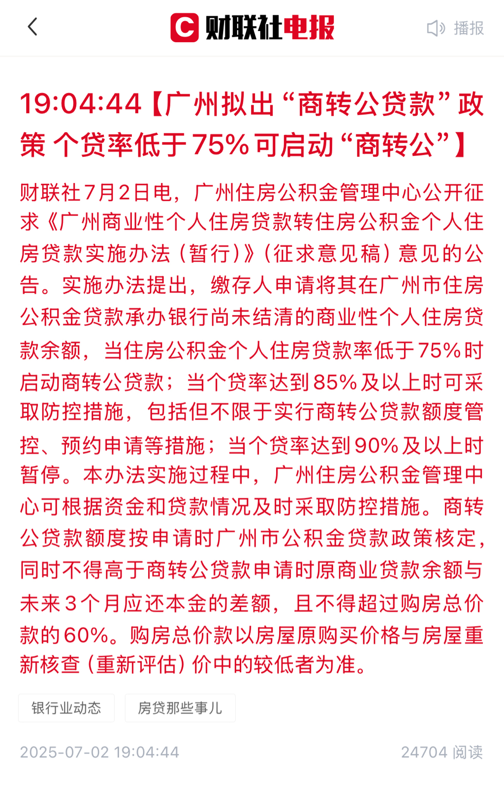 2025/6/13 广州拟全面取消住房“三限”(限购、限售、限价)并降低贷款首付比例和利率.
