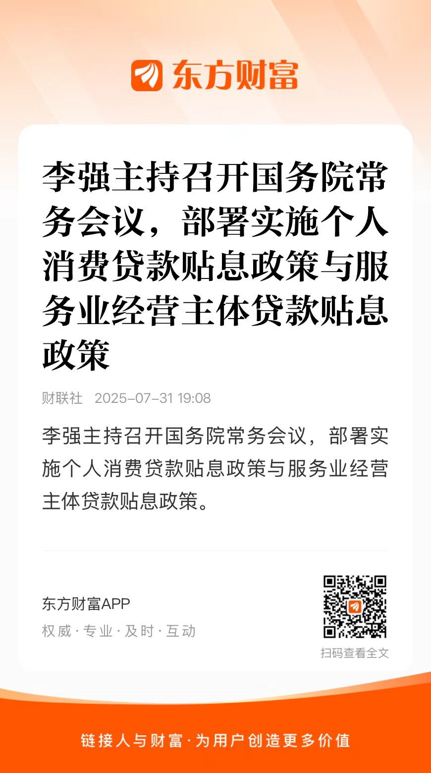 2025/08/12 消费贷贴息新政落地:年贴息1% 通过金融机构直接扣减。