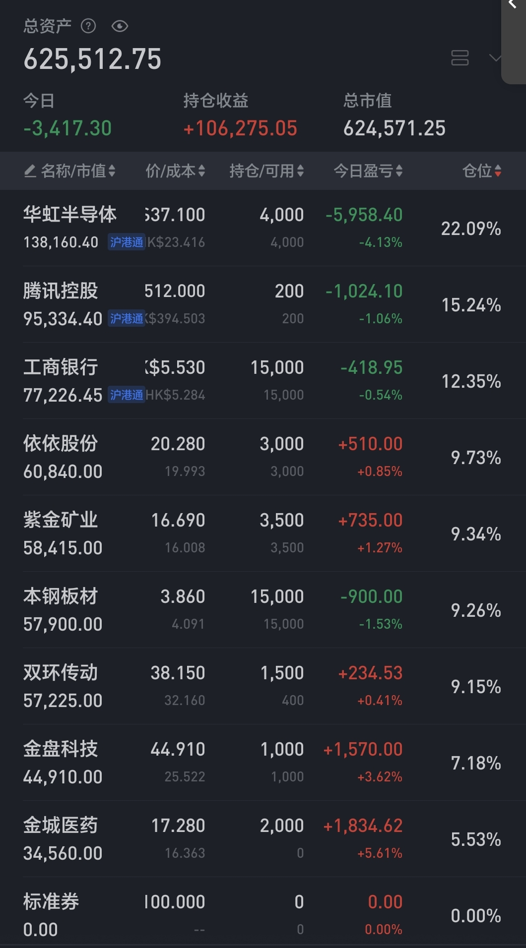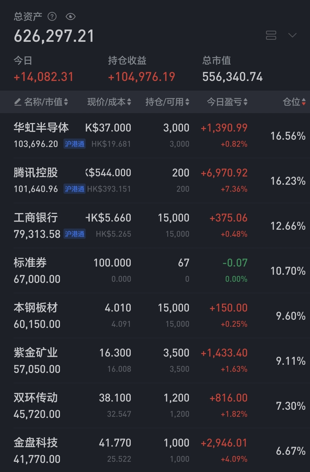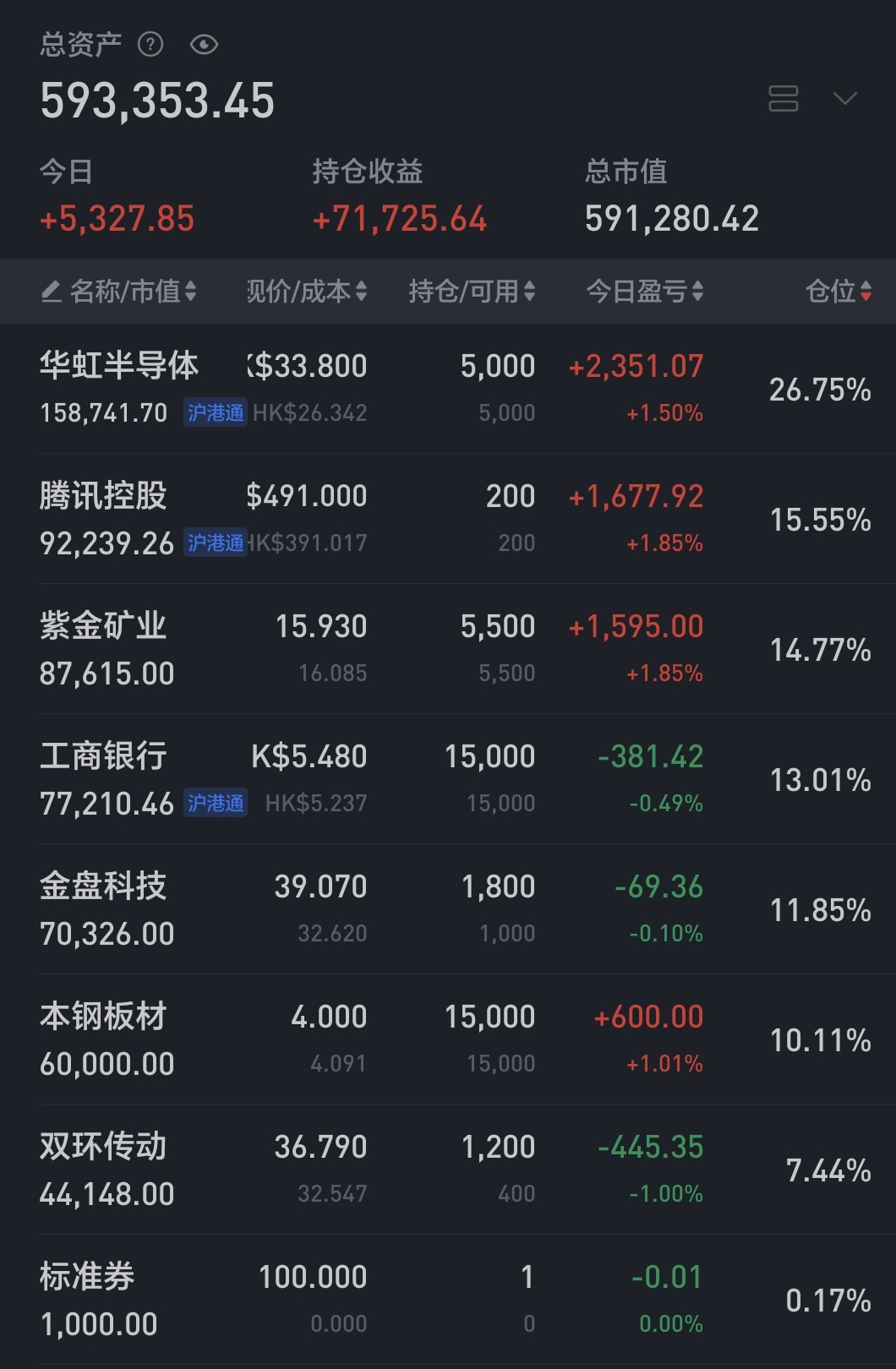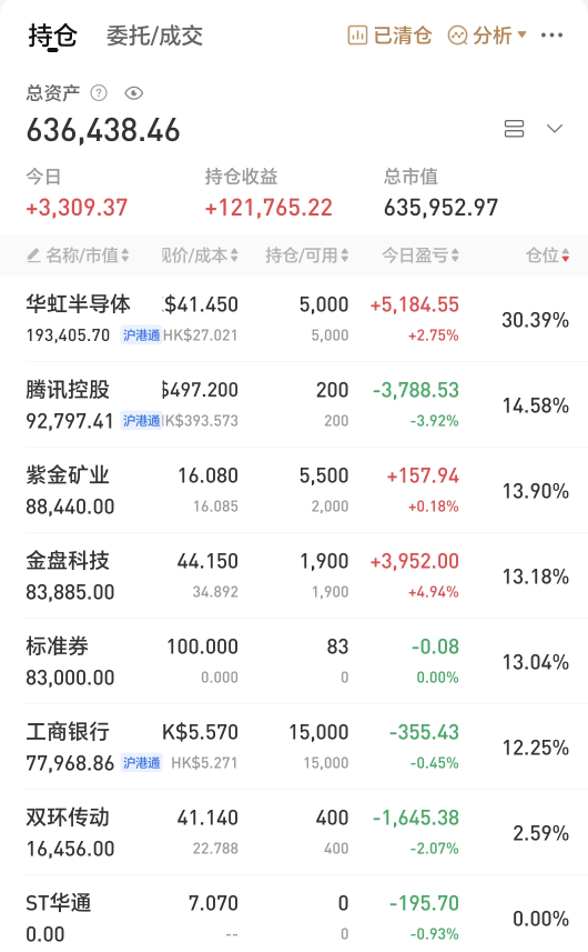 今日上午低位继续加仓了金盘,目前仓位接近满仓。