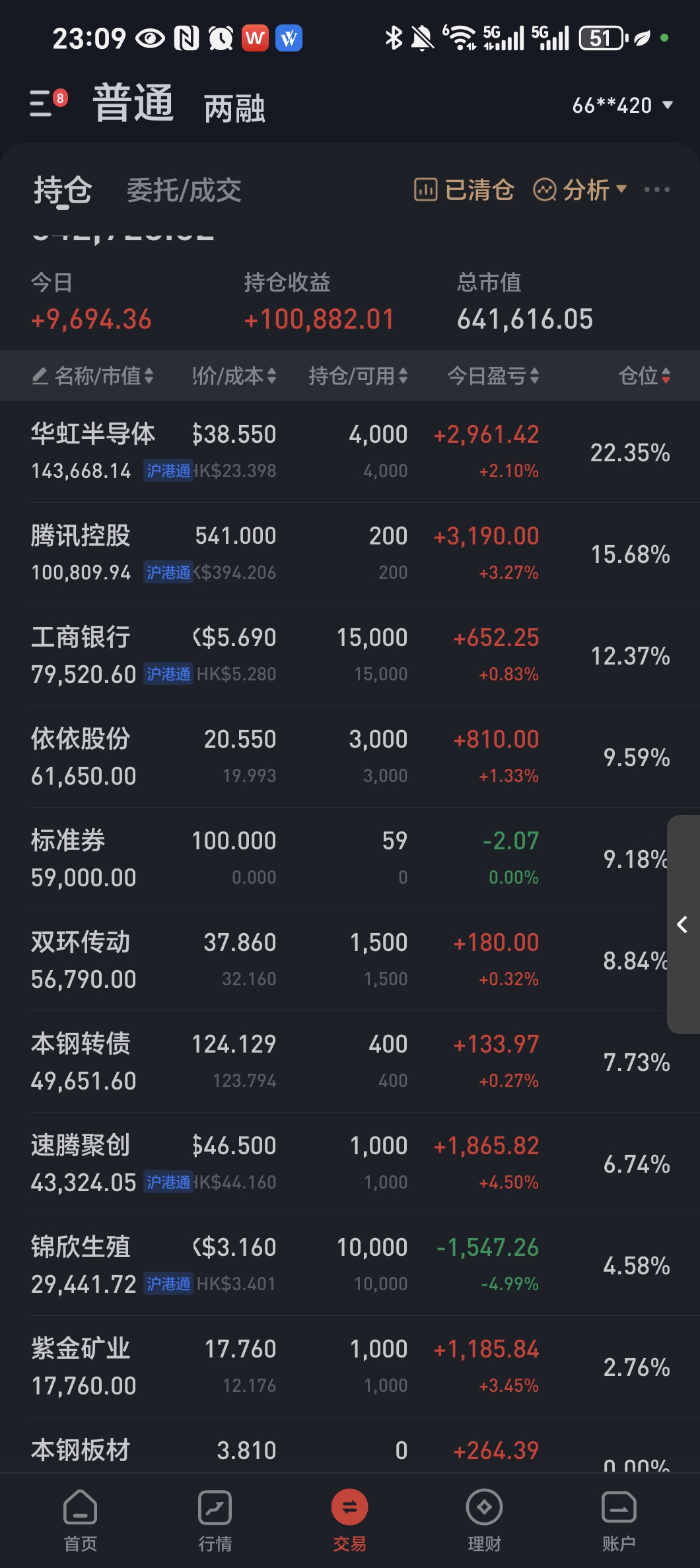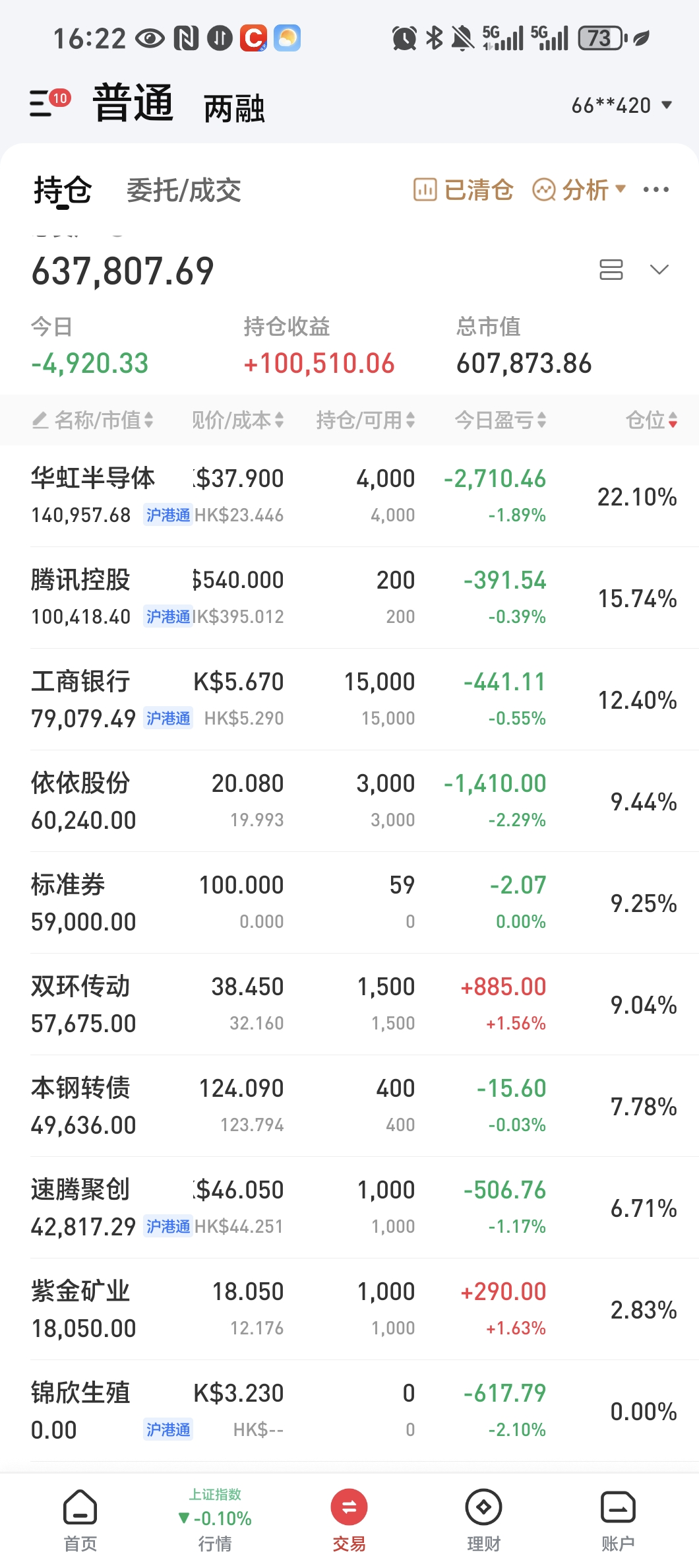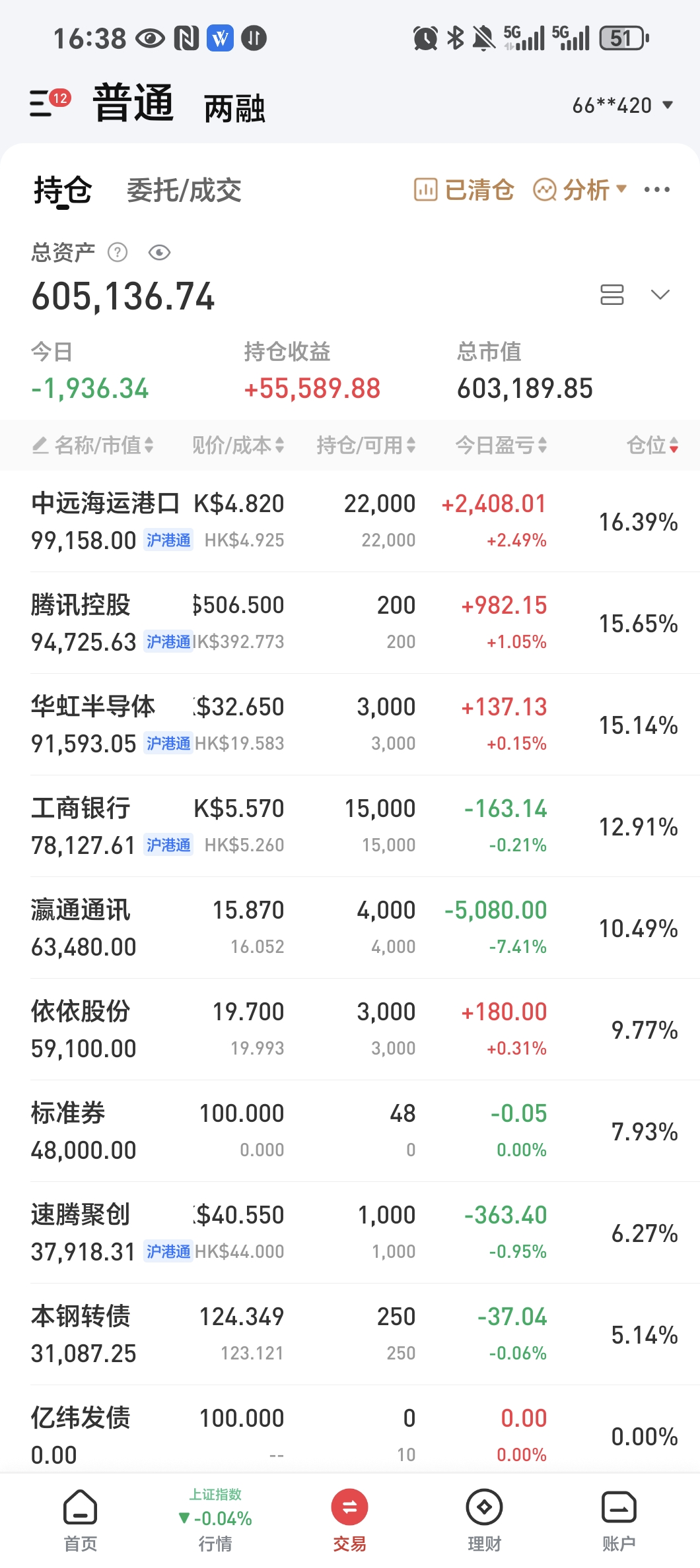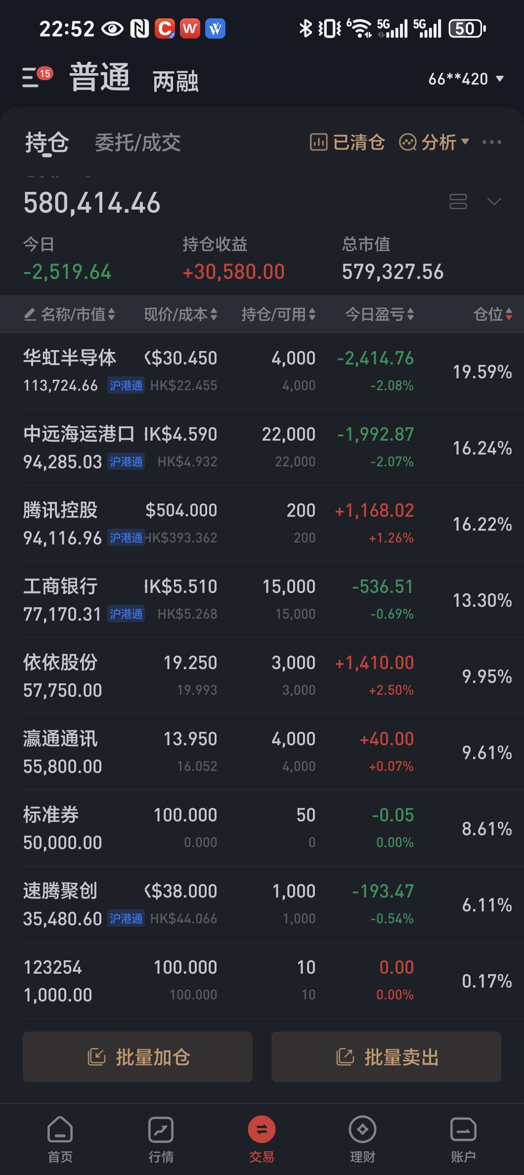 转债从两融账户挪回,图里持仓为个股和转债持仓,不含期权账户。