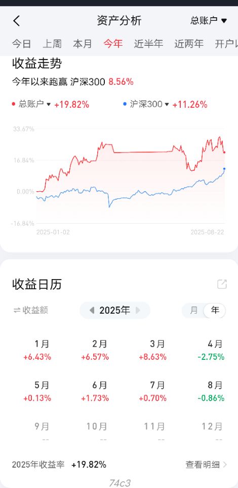 本月大盘指数大幅上涨,个人账户最高在8月18日取得6%的月度收益,之后由于被盘面洗盘影响心态导致操作紊乱,到手的收益没有拿到,不该踩的坑却跳进去了,最终收益全部回吐,甚至负收益。