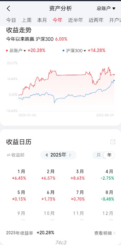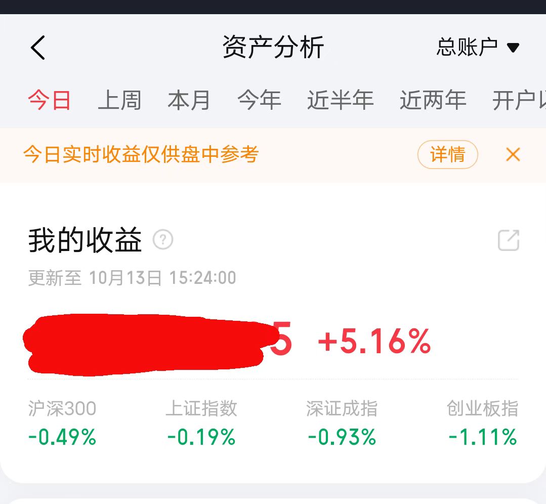 个人账户,今日取得5.16%的收益,甚为欣慰。