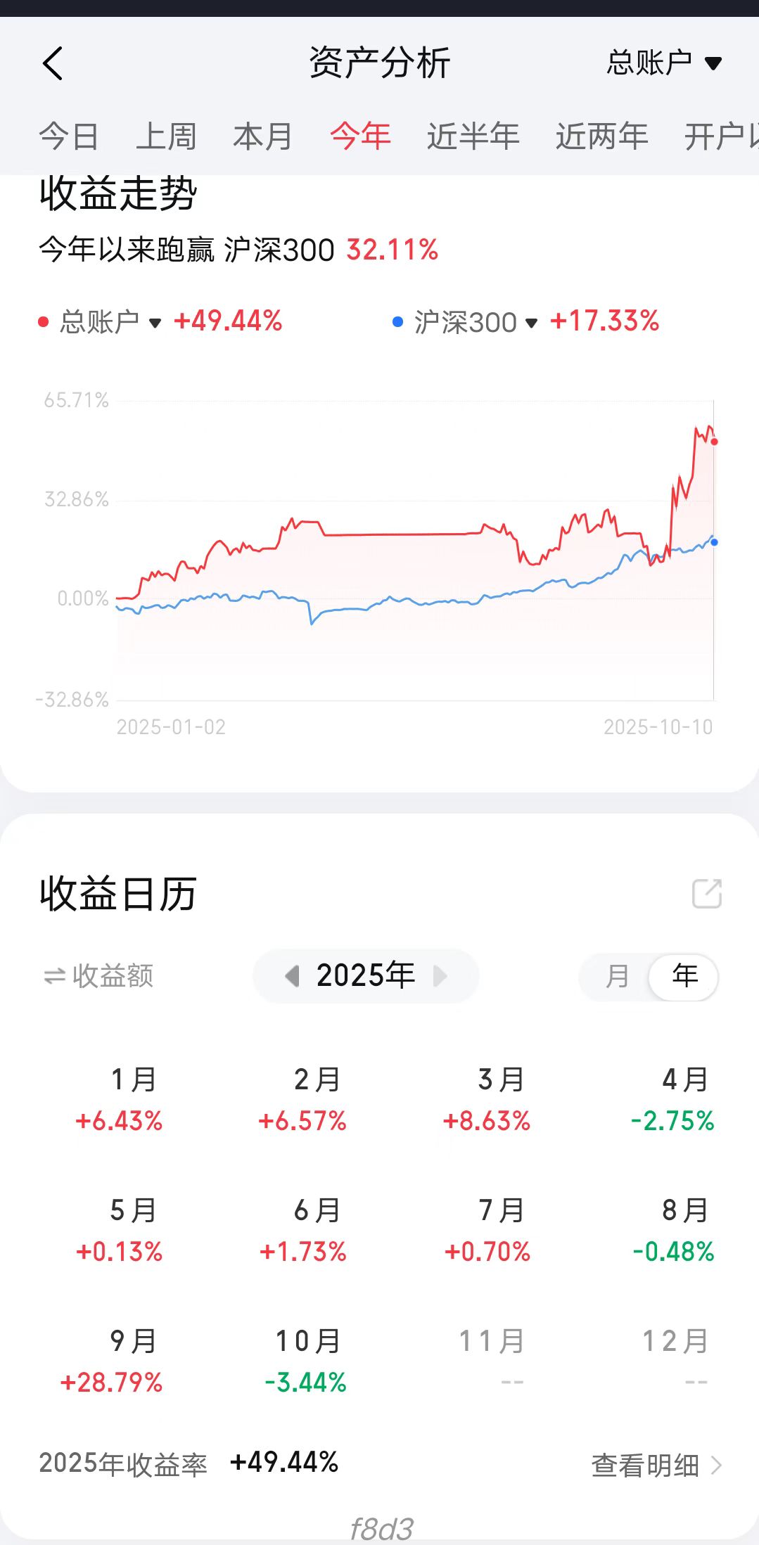 其实本月可以有很圆满的结局,10月16日,我在197至200的价位间清仓了满仓满融的纳芯微(顺手把历史遗留的零碎股也全部清仓了,基本都是负成本持有,当时想着考虑换家券商,所以全部出了),月度收阳线,年度创新高,完美!但是……不知哪根筋抽了,心血来潮,满仓满融分别买入中信证券和比亚迪,买入当天就觉得不妙,后悔不已,第二天(17号)一开盘就全部清掉了,中信没亏,比亚迪导致了主要的亏损,又把账户打回了原形。