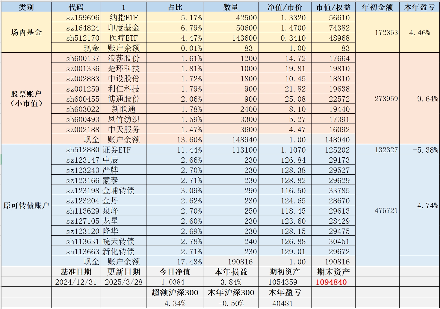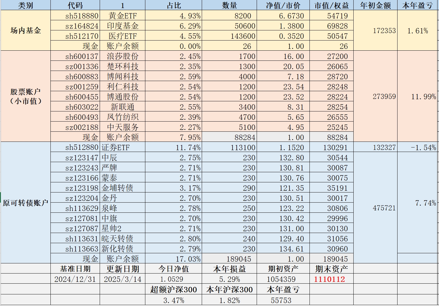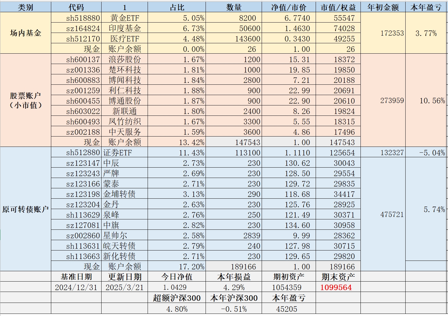 已经狠狠地连续亏了三年,说起来都和股指期货有关,今年修改了持仓,没有股指期货了。看看今年能不能摆脱亏损。目前以小市值和可转债为主