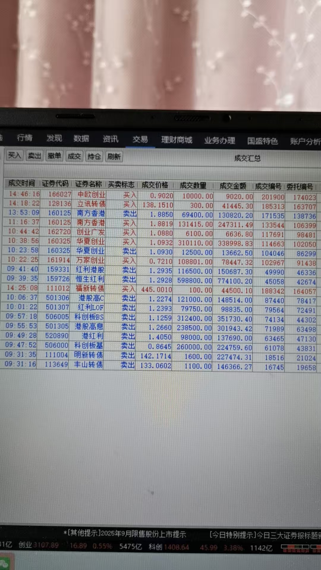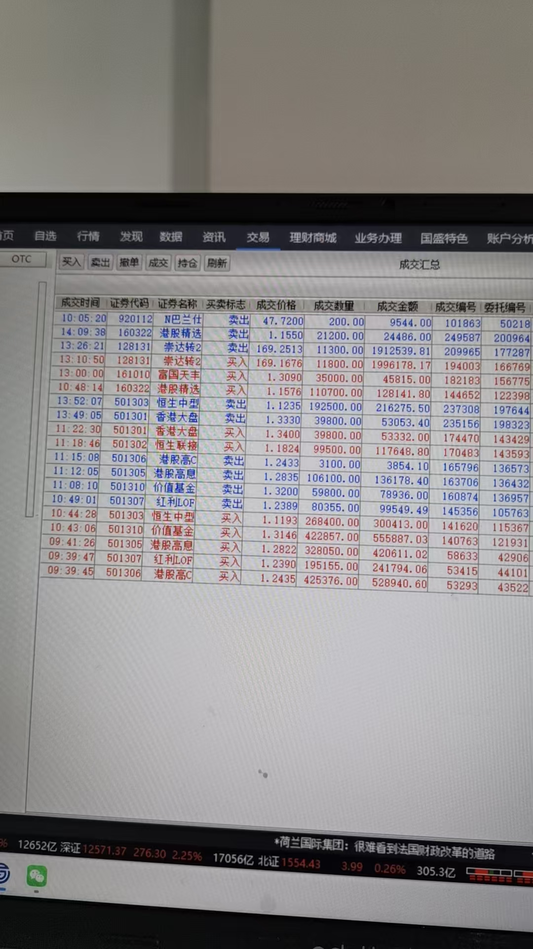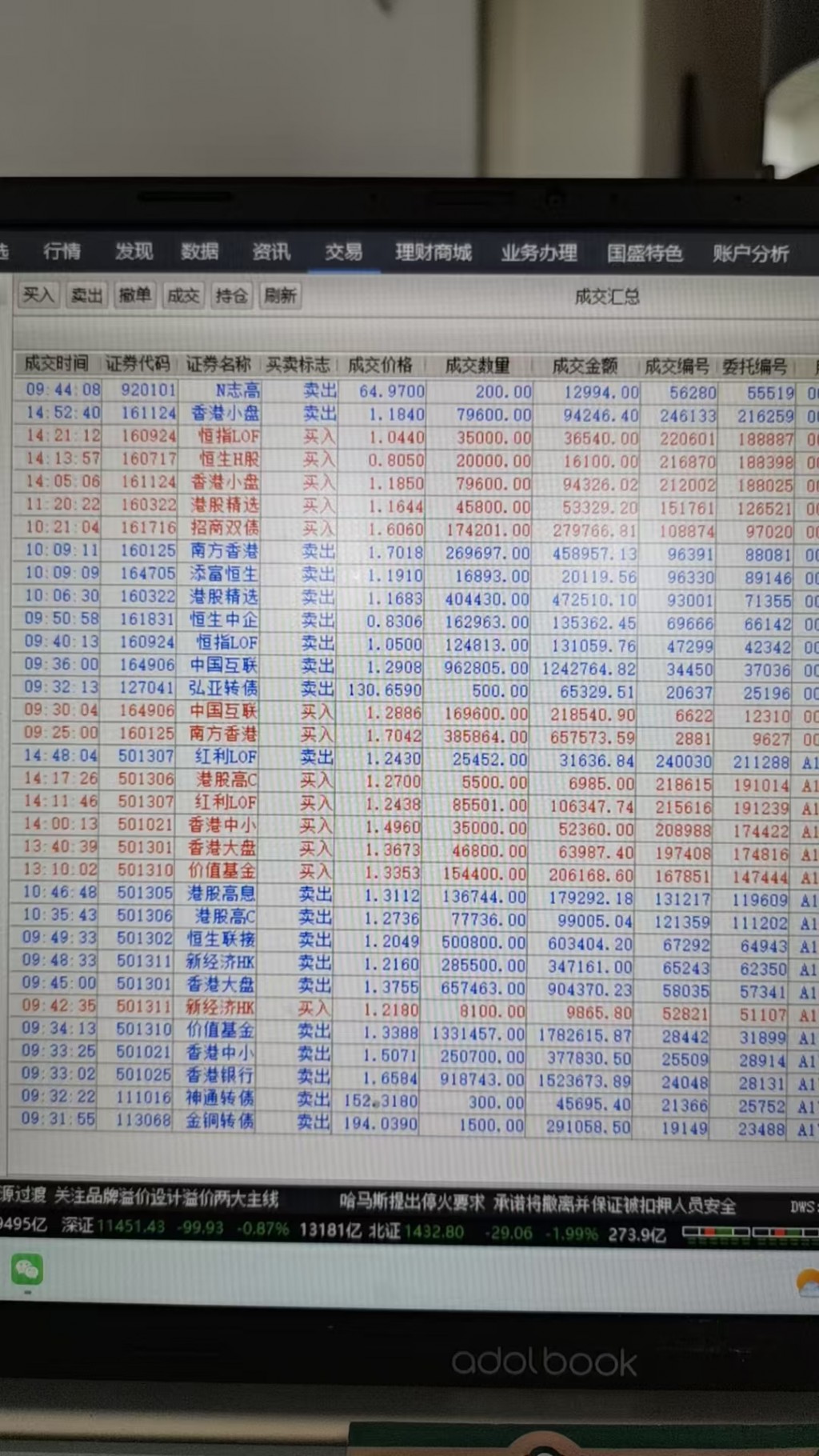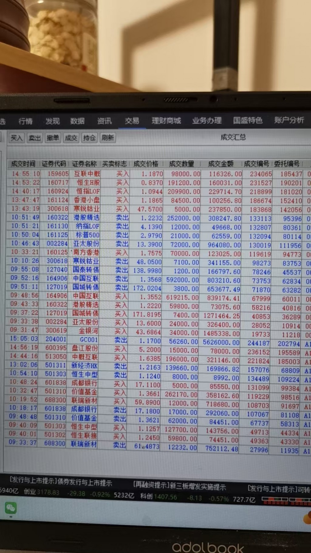 今天净值盈利为0.37%,基金净值1.308,今天把股票和基金全部清仓了,买入短融ETF511360,权益类仓位今年首次为零。今天港股继续下跌,A股维持强势但个股感觉与今年3月底4月初行情有点相似。昨天追涨付出了学费,临近年末还是要管住手耐心等待指数企稳。