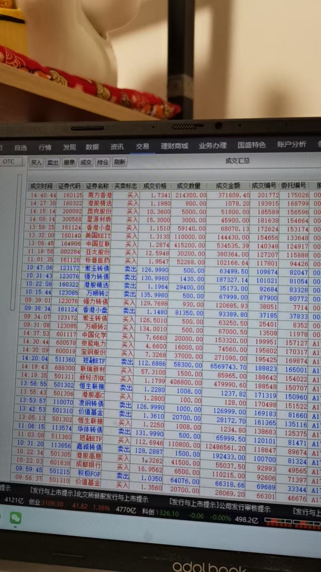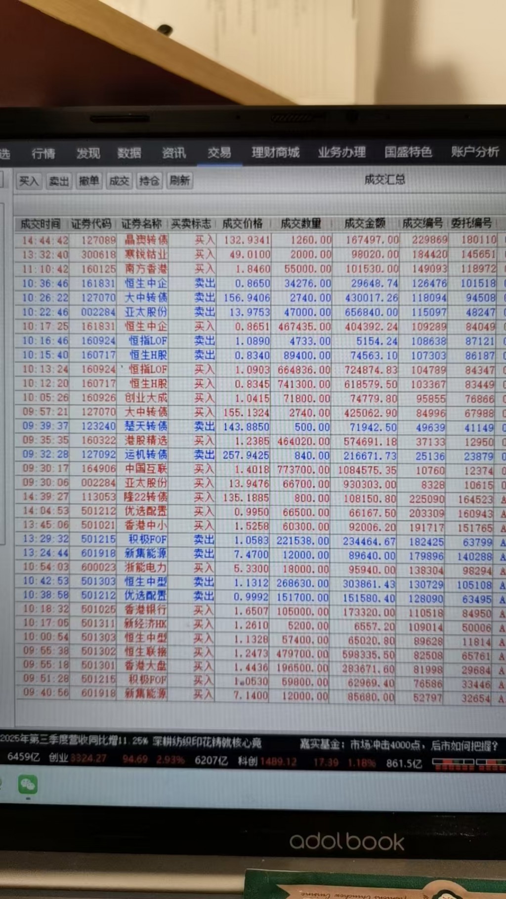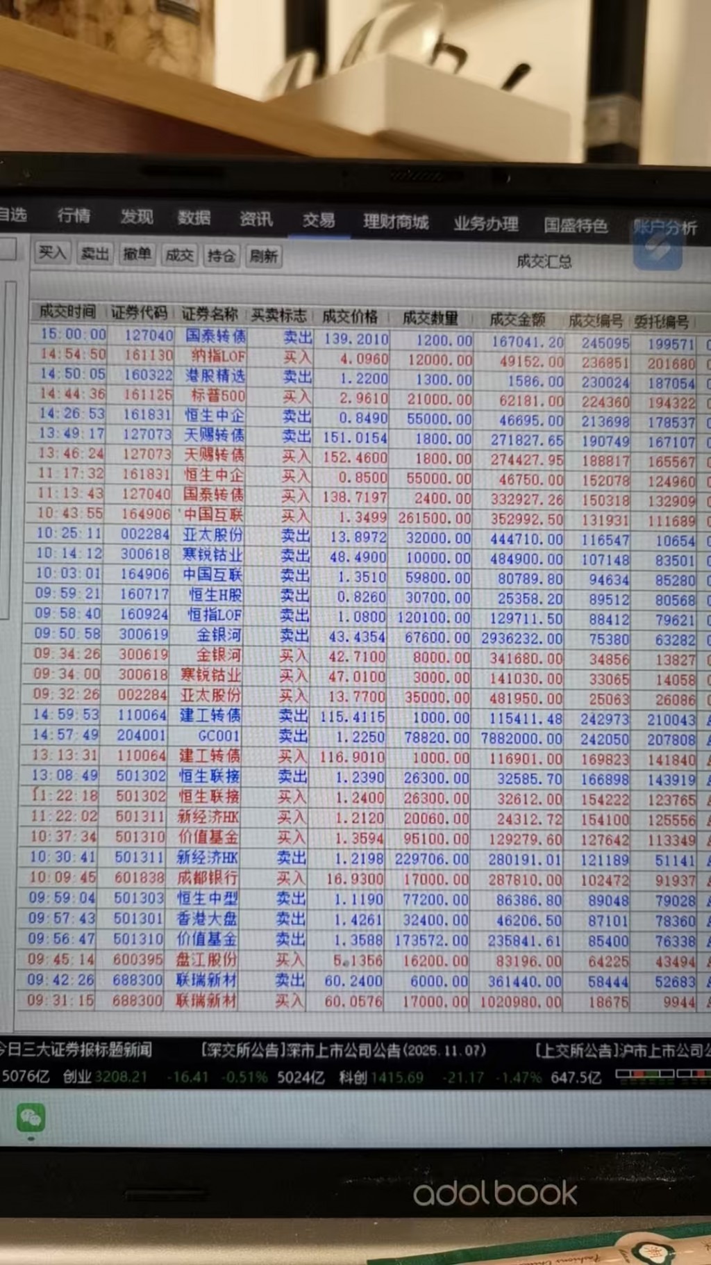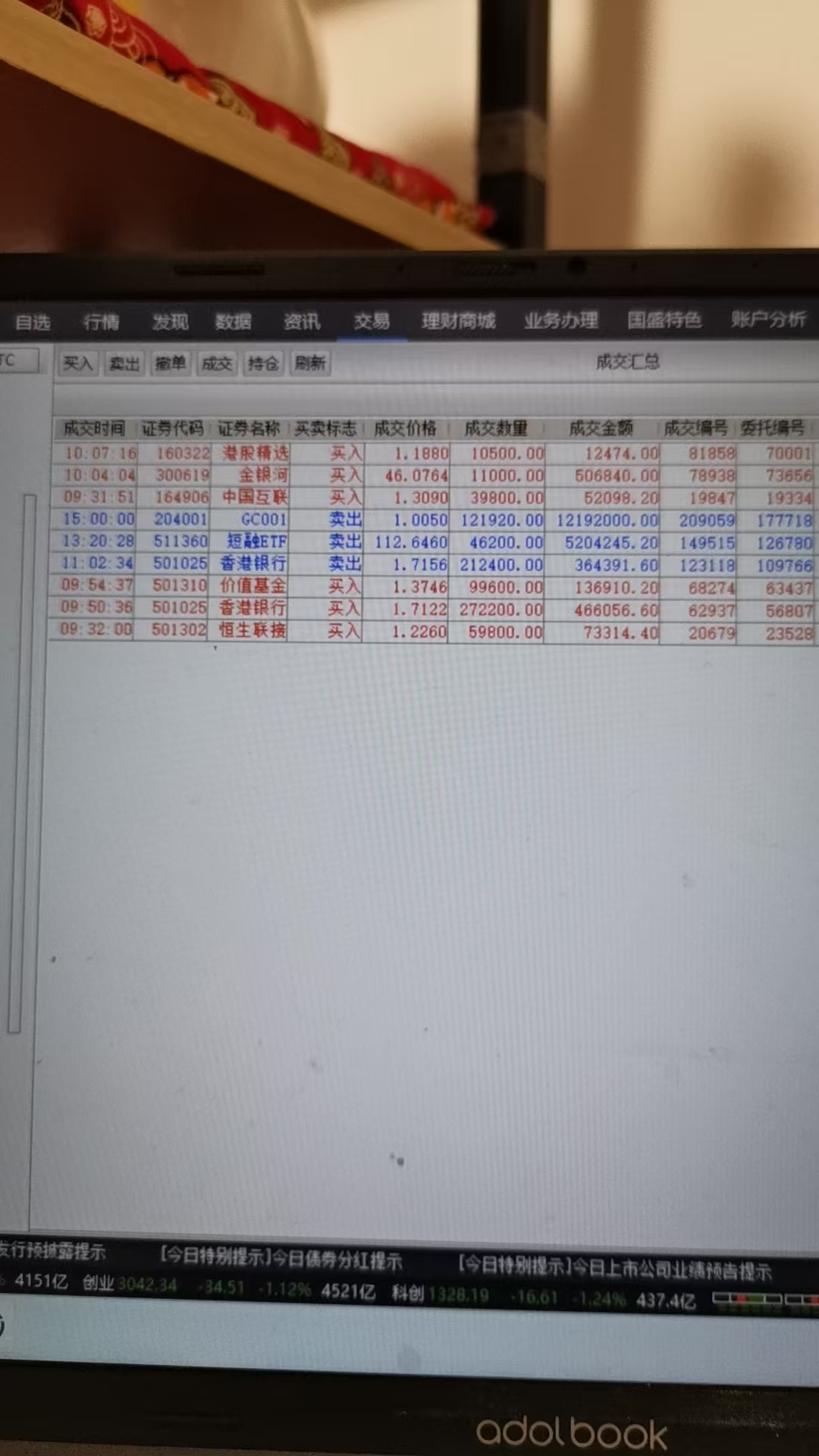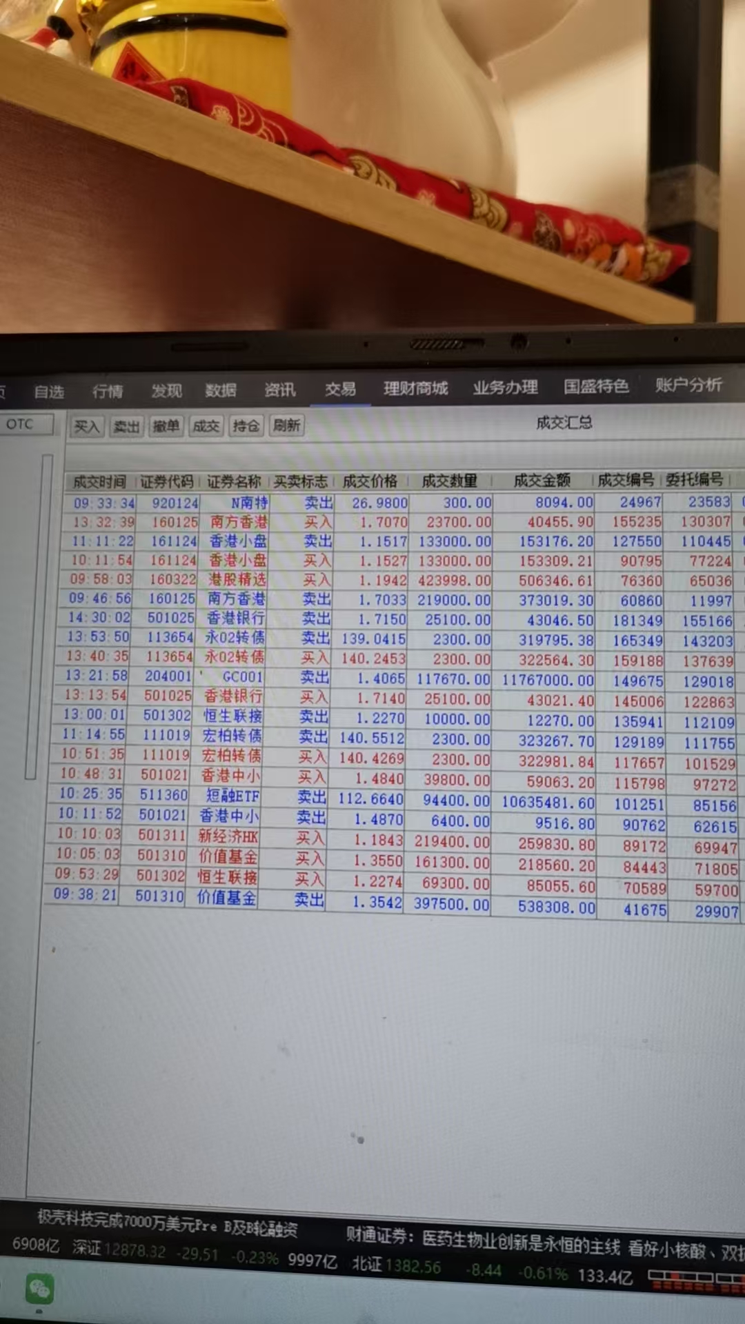 今天净值盈利为0.37%,基金净值1.308,今天把股票和基金全部清仓了,买入短融ETF511360,权益类仓位今年首次为零。今天港股继续下跌,A股维持强势但个股感觉与今年3月底4月初行情有点相似。昨天追涨付出了学费,临近年末还是要管住手耐心等待指数企稳。