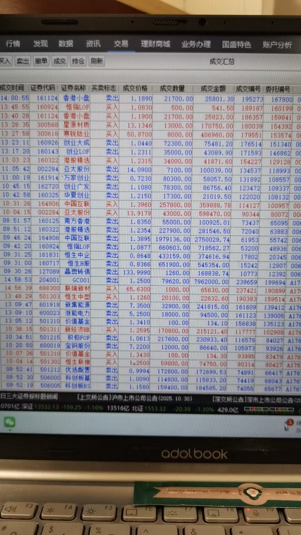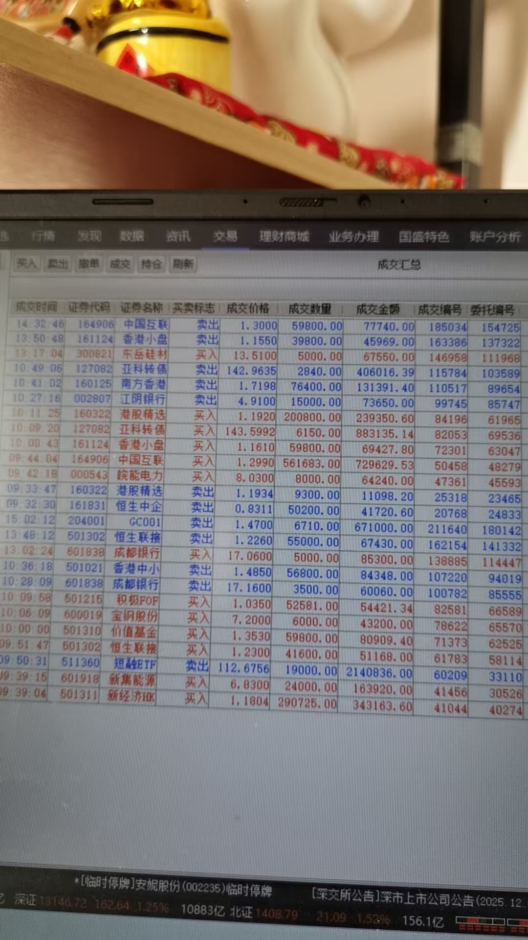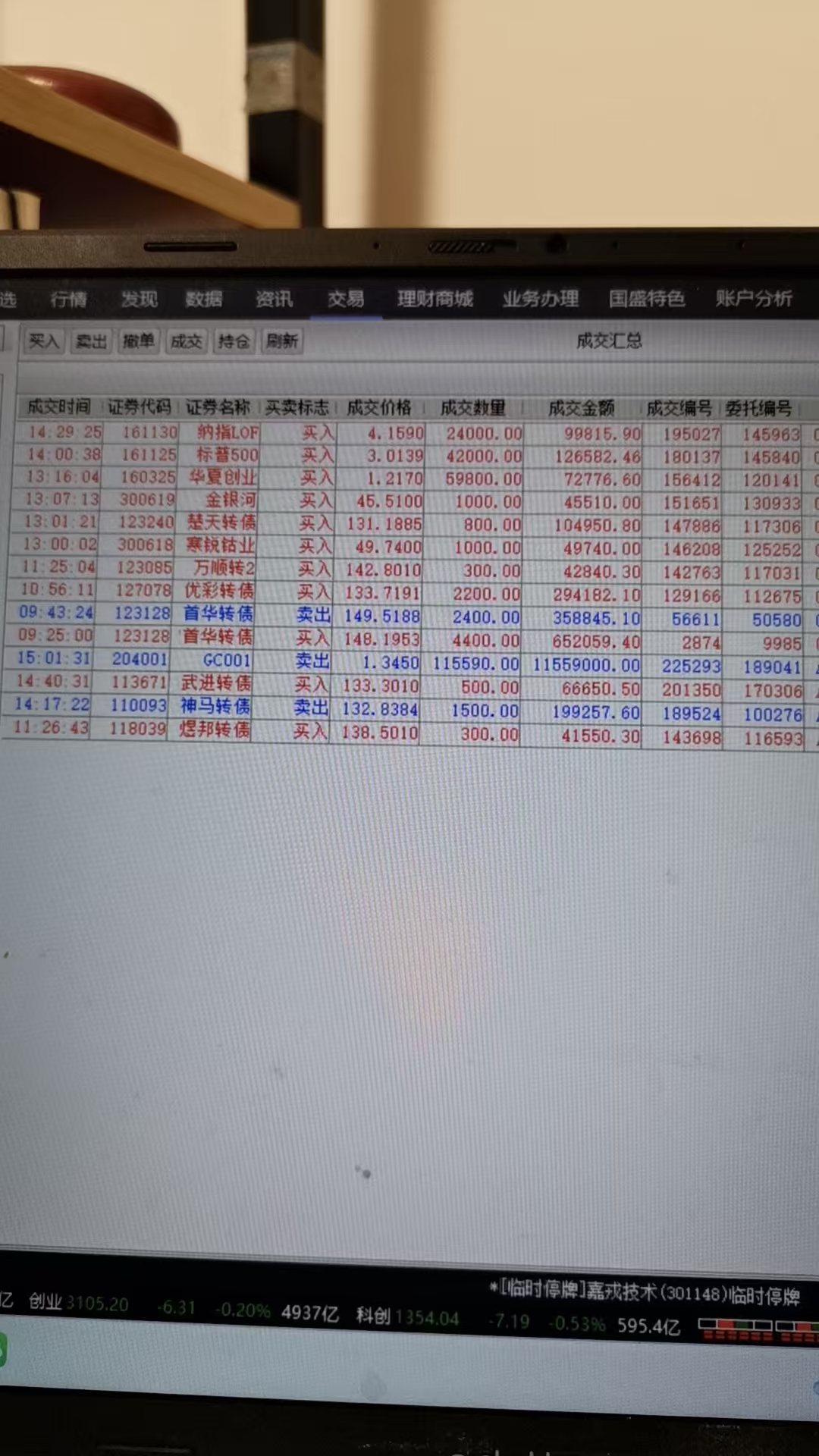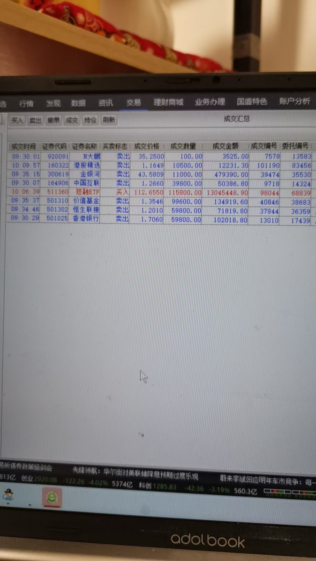 今天净值盈利为0.37%,基金净值1.308,今天把股票和基金全部清仓了,买入短融ETF511360,权益类仓位今年首次为零。今天港股继续下跌,A股维持强势但个股感觉与今年3月底4月初行情有点相似。昨天追涨付出了学费,临近年末还是要管住手耐心等待指数企稳。