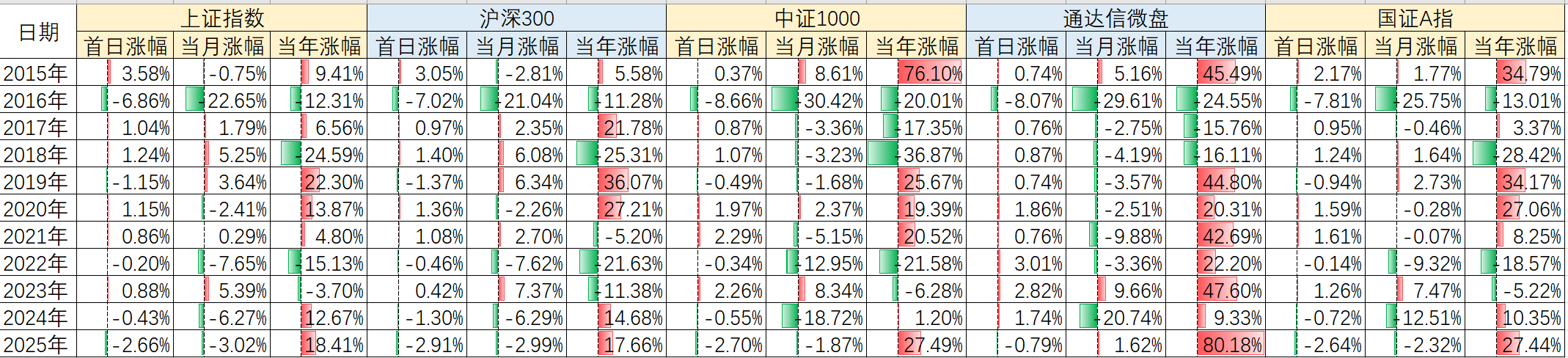 2025年首个交易日各指数出现较大跌幅,年末均取得不错的涨幅,没有按照过往的剧本演绎。