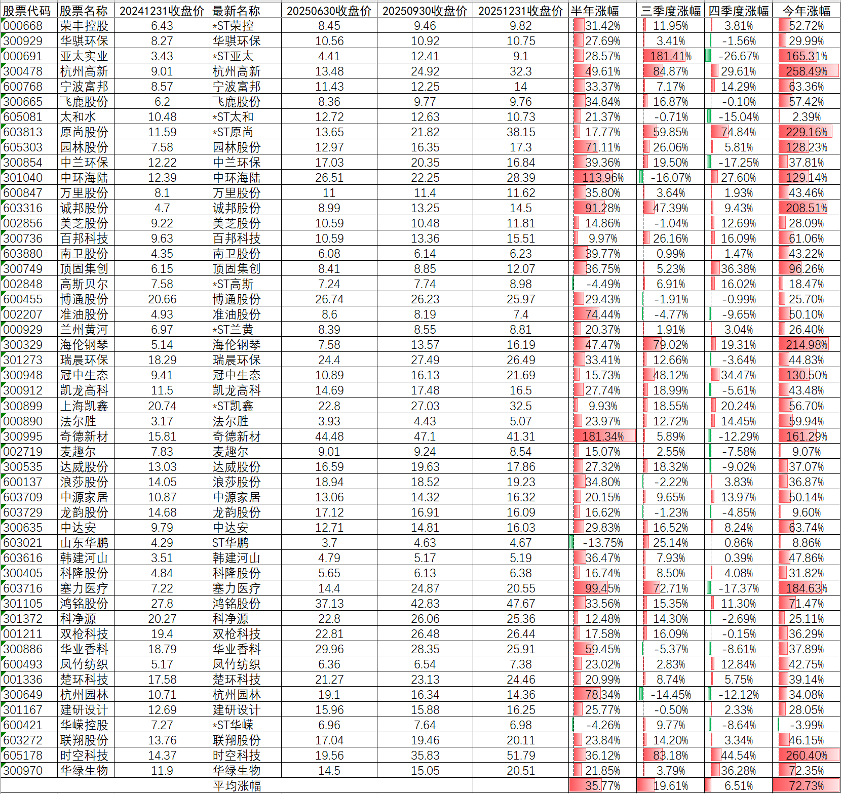 前3个季度涨幅可观,四季度虽然经历回调,平均涨幅依然有6.51%。