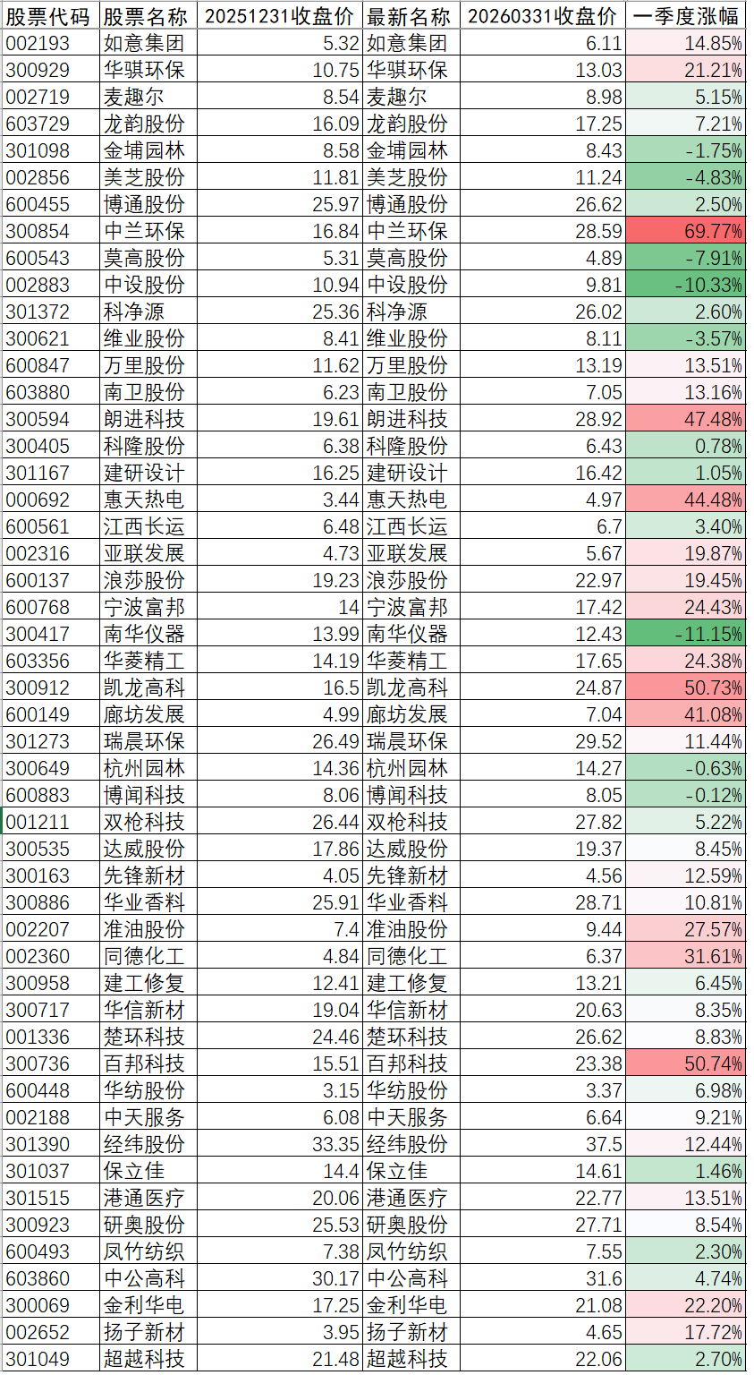 最后看年初最小50市值的个股,如果一直持仓不动,今年前三季度的涨幅情况: