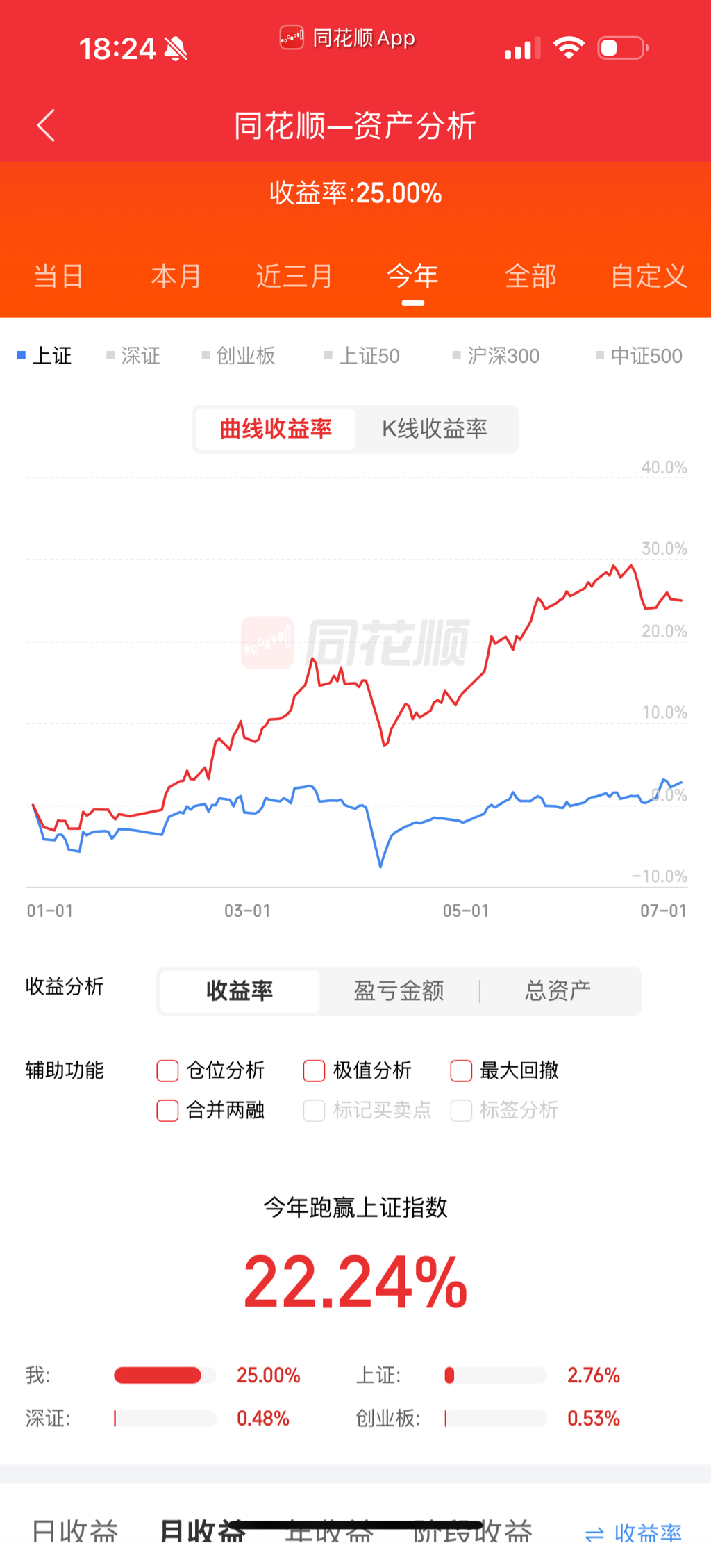 上半年结束,大账户正好收于25%,俩小账户分别38.16%、26.14%,港股户11.6%。