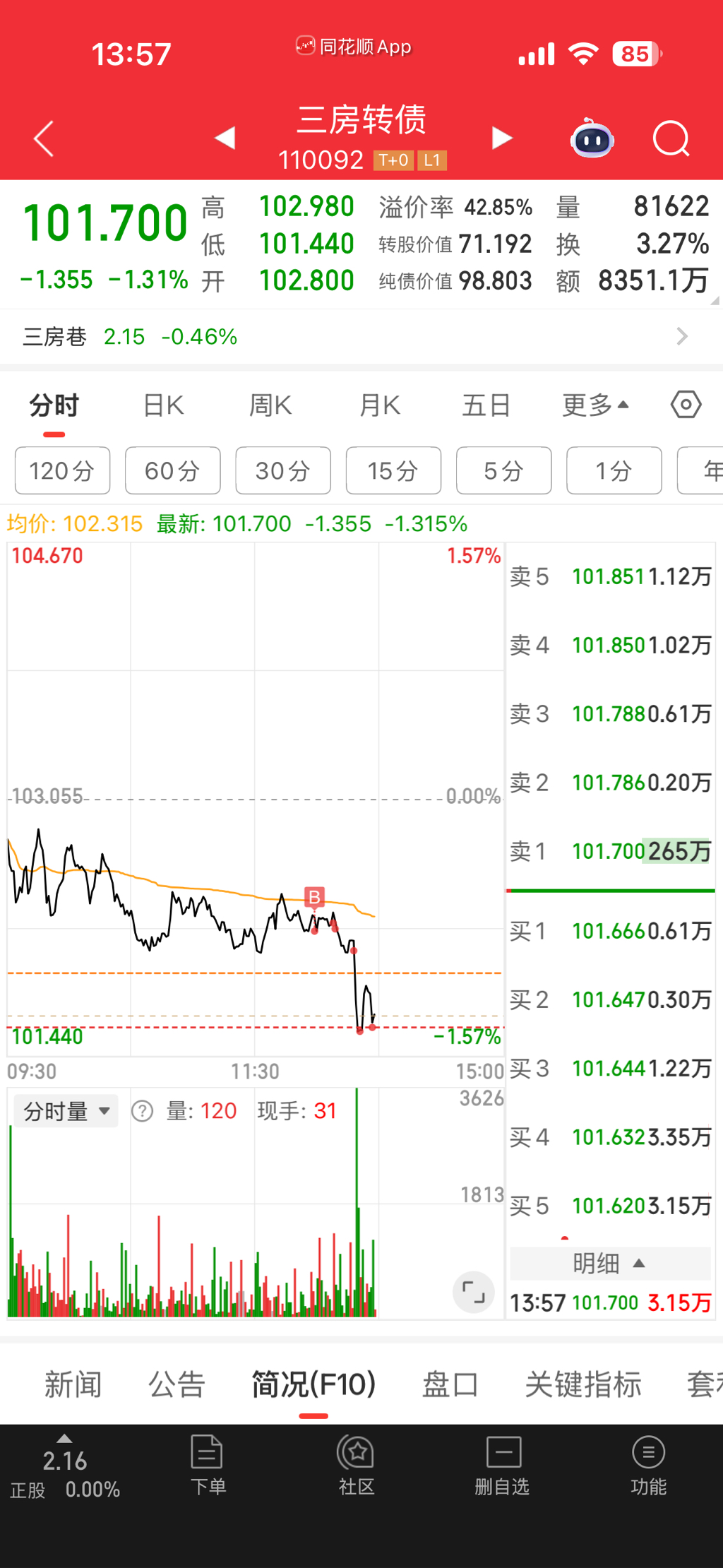个人理解是不如赌正股了,重整得小额,小额得促转股,转股就必拉正股明天上午切部分转债到正股。