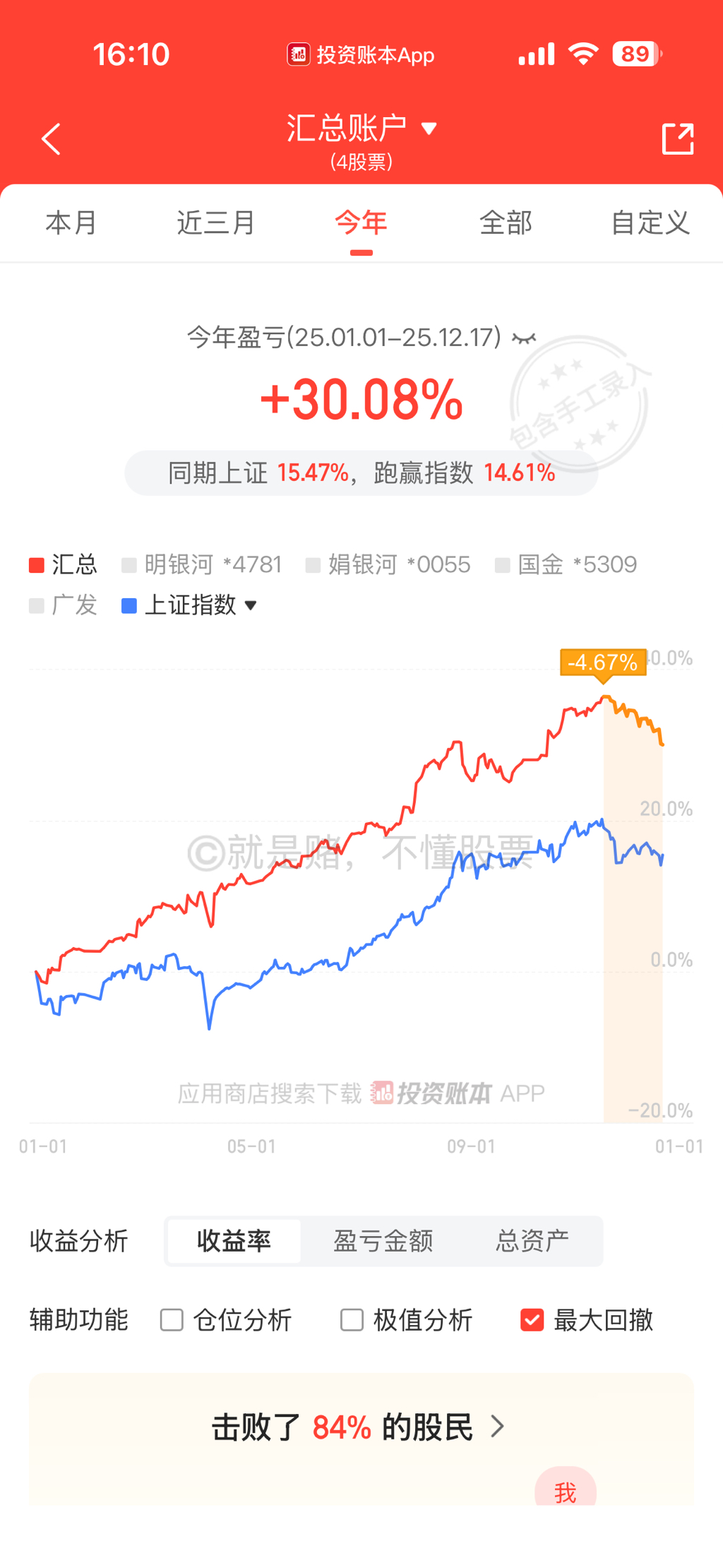 最近创出年内最大回撤4.67%,希望三房别大跌了。今年的目标完成不了了,保住30%先吧。