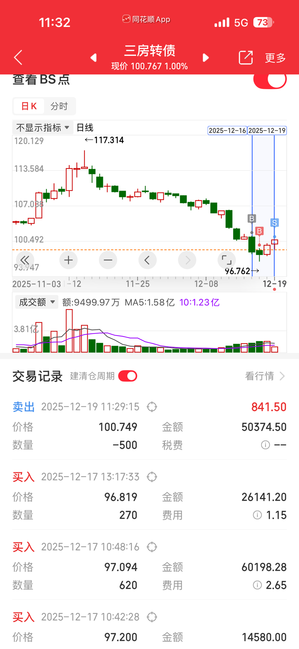2、整体本来今天盈利一个点,后面回调,大盘上去了 ,我的债没有, 有的还绿了,日了狗。