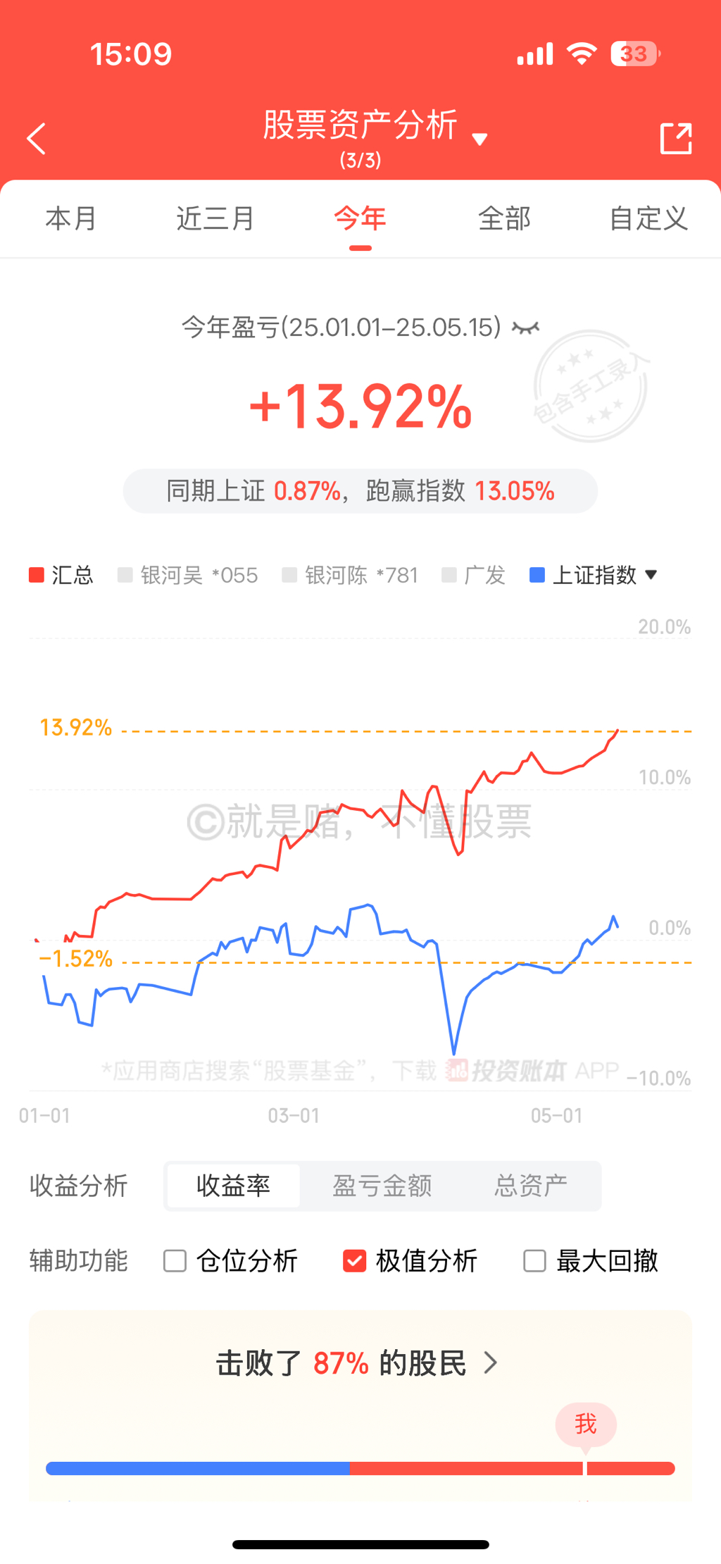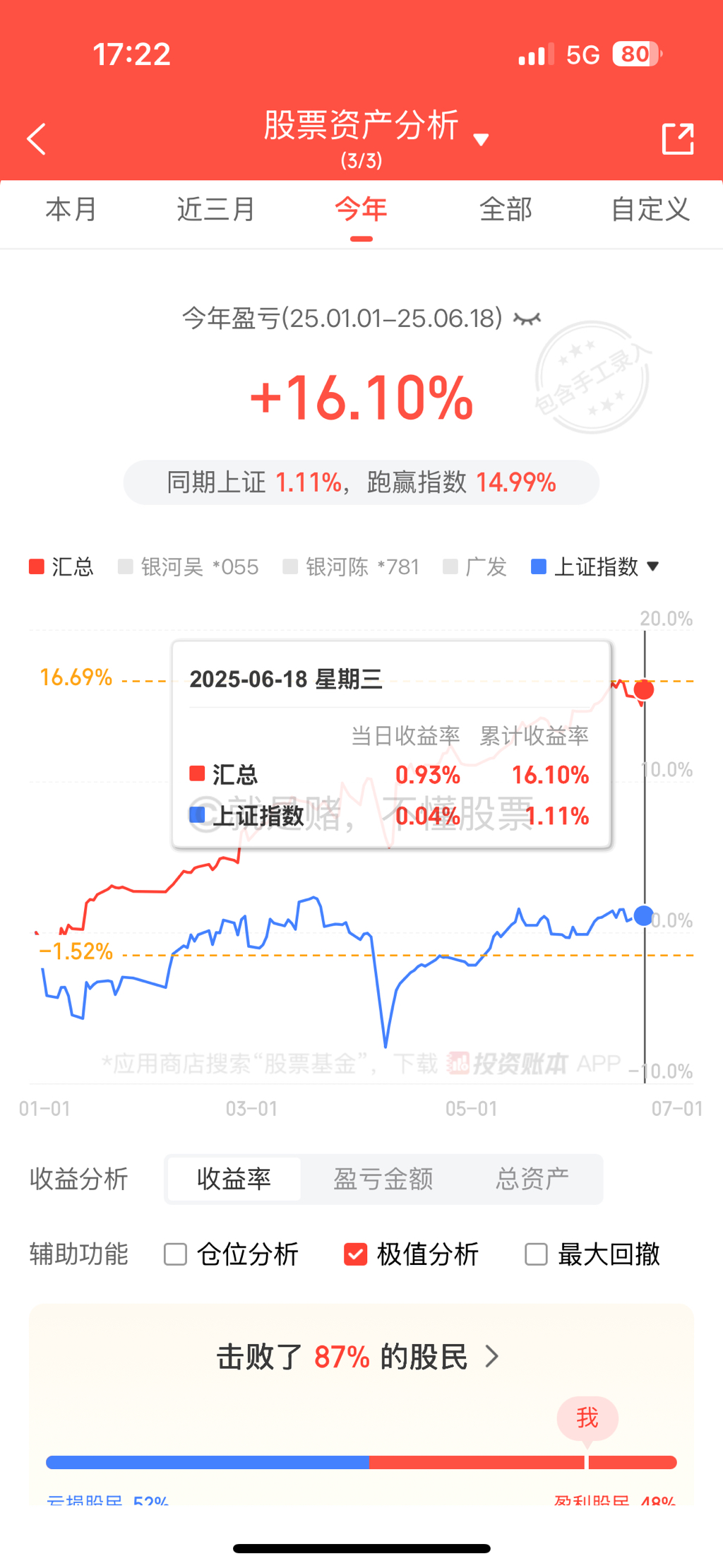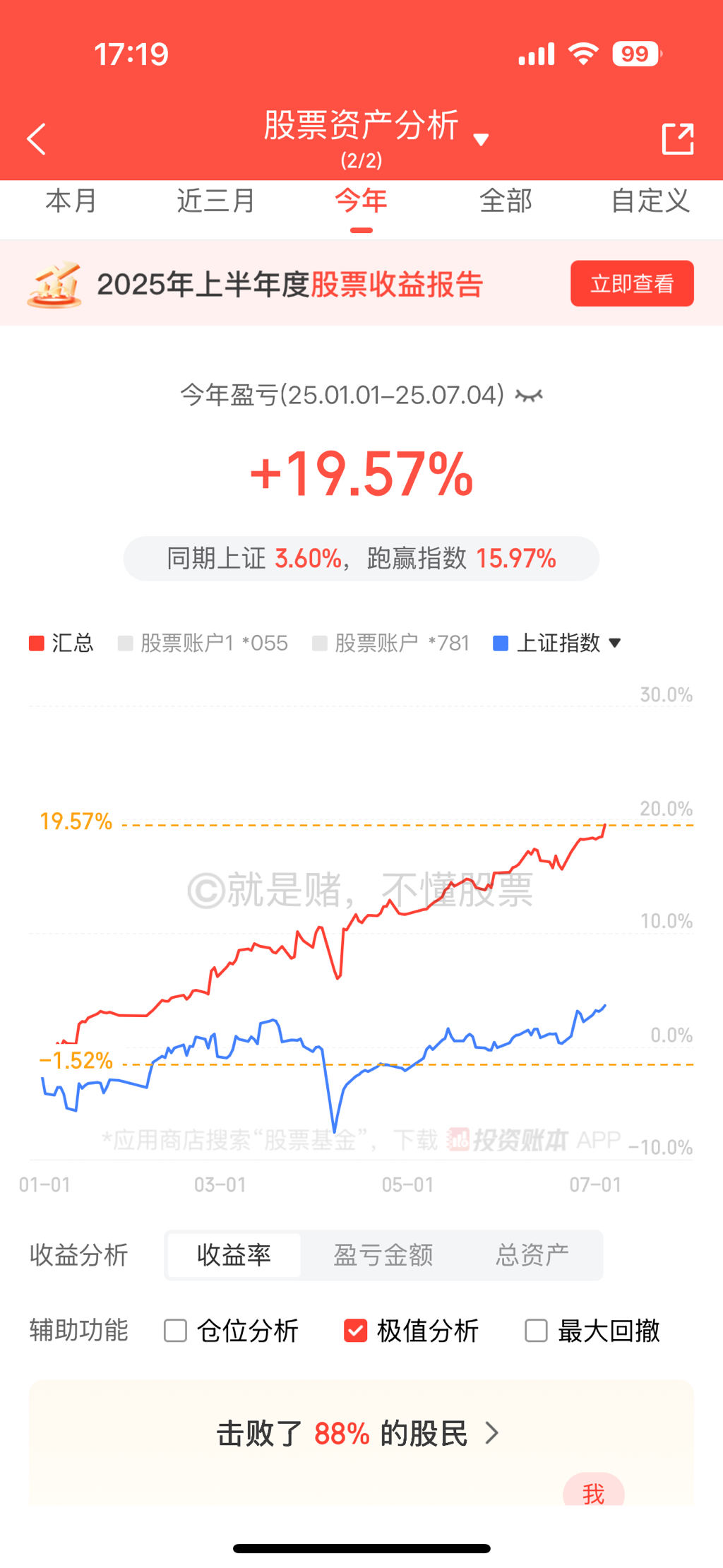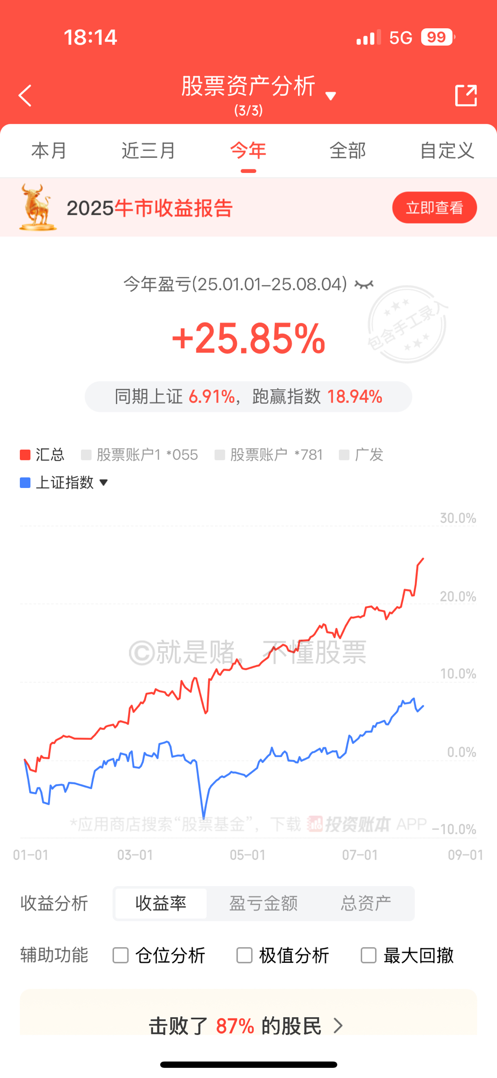 岭南之战以后,现在稳的一逼,虽然我还是会有仓位过重的操作,比如最多的仓位是40%,不过足够安全。