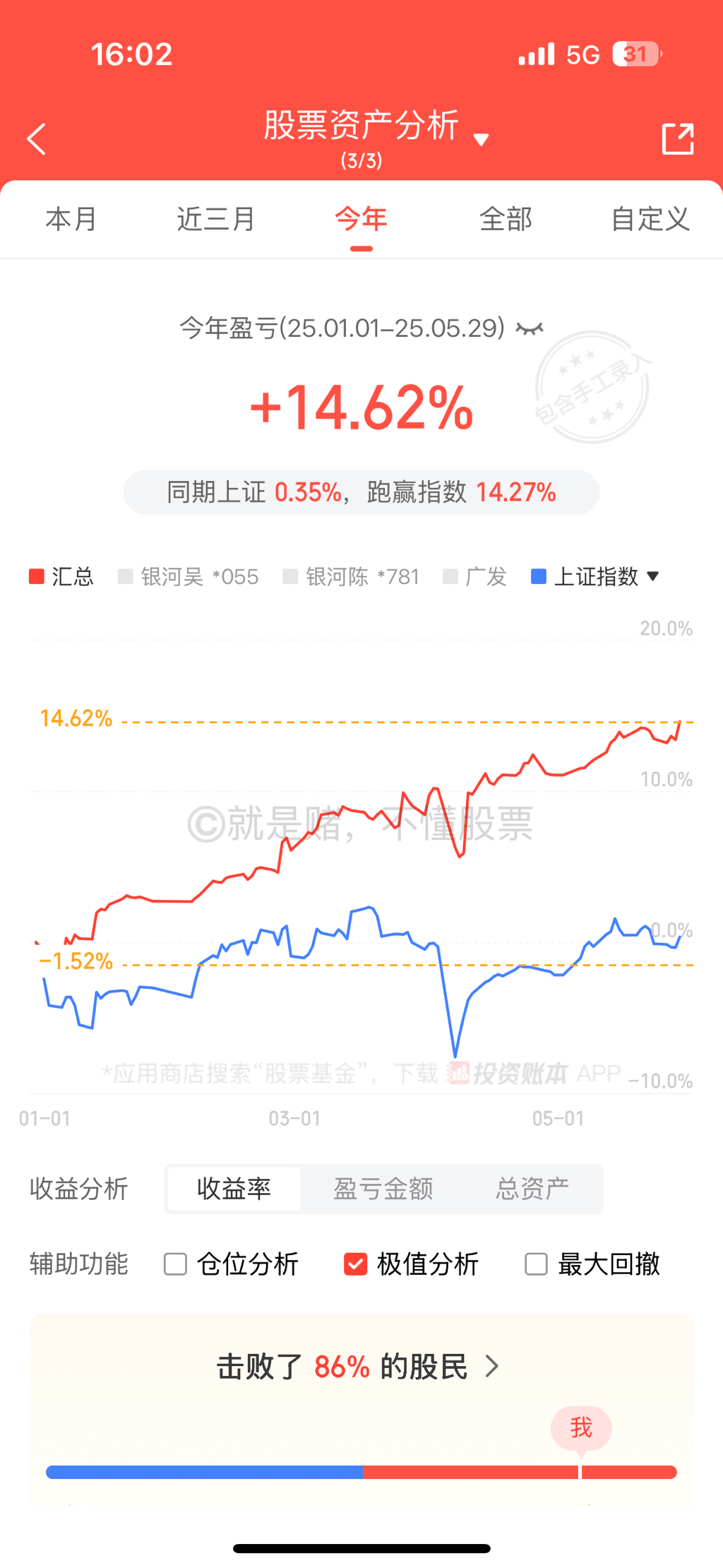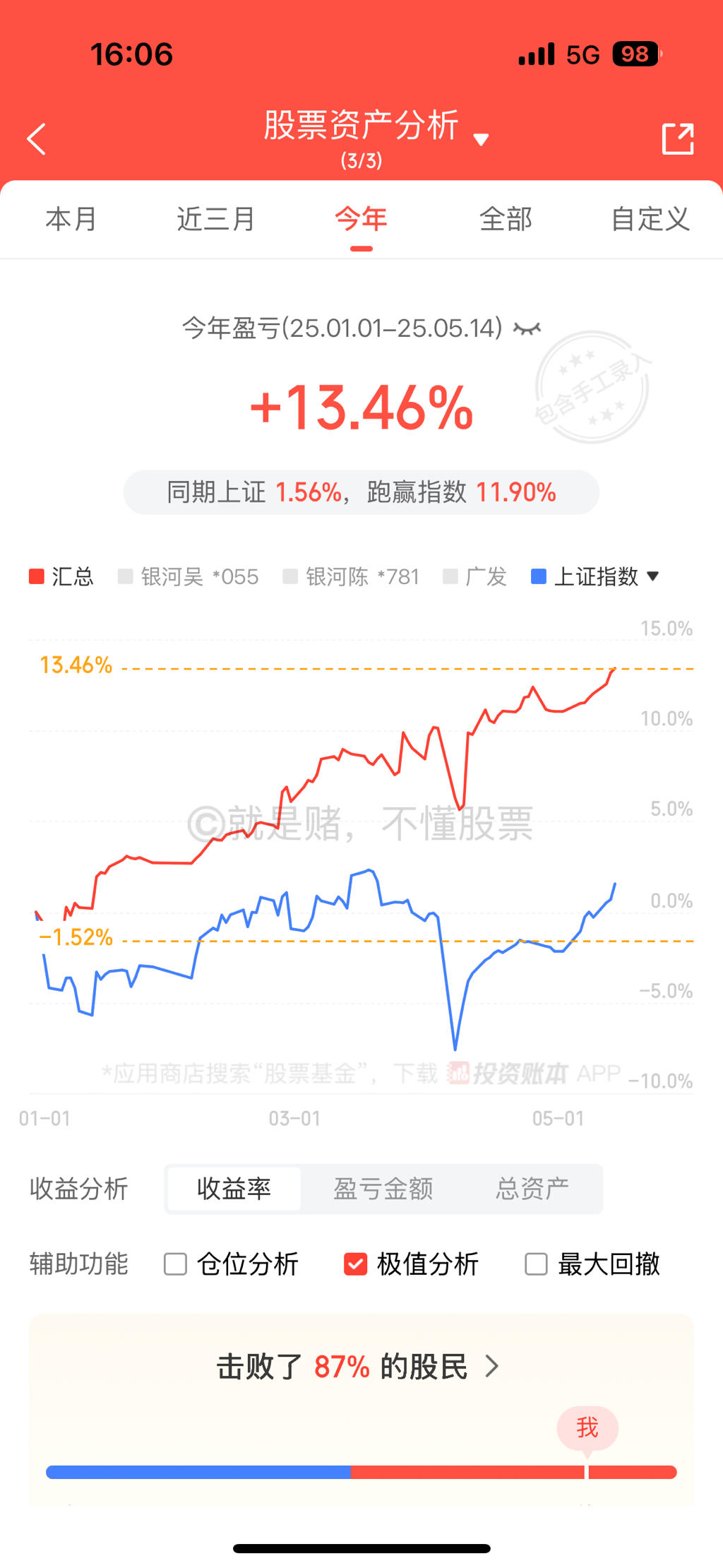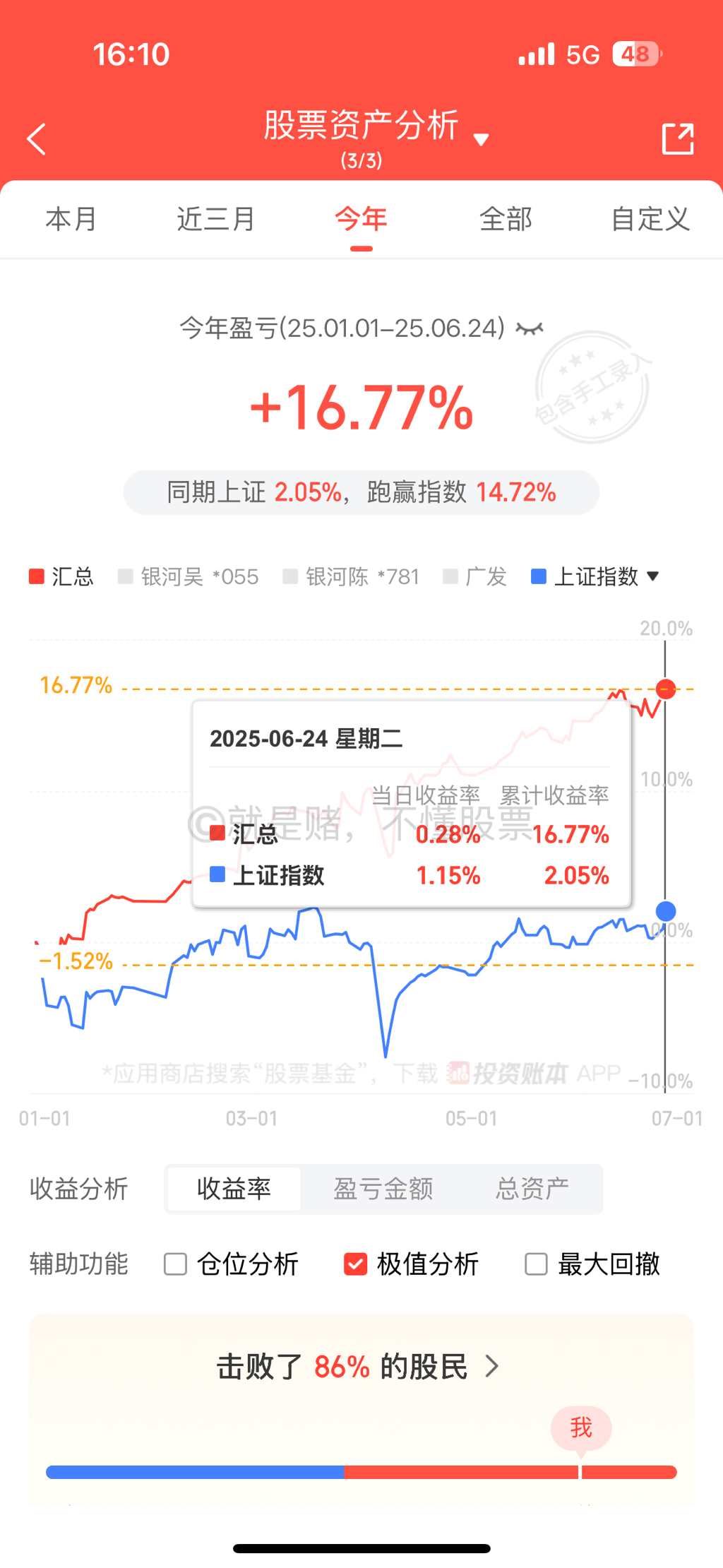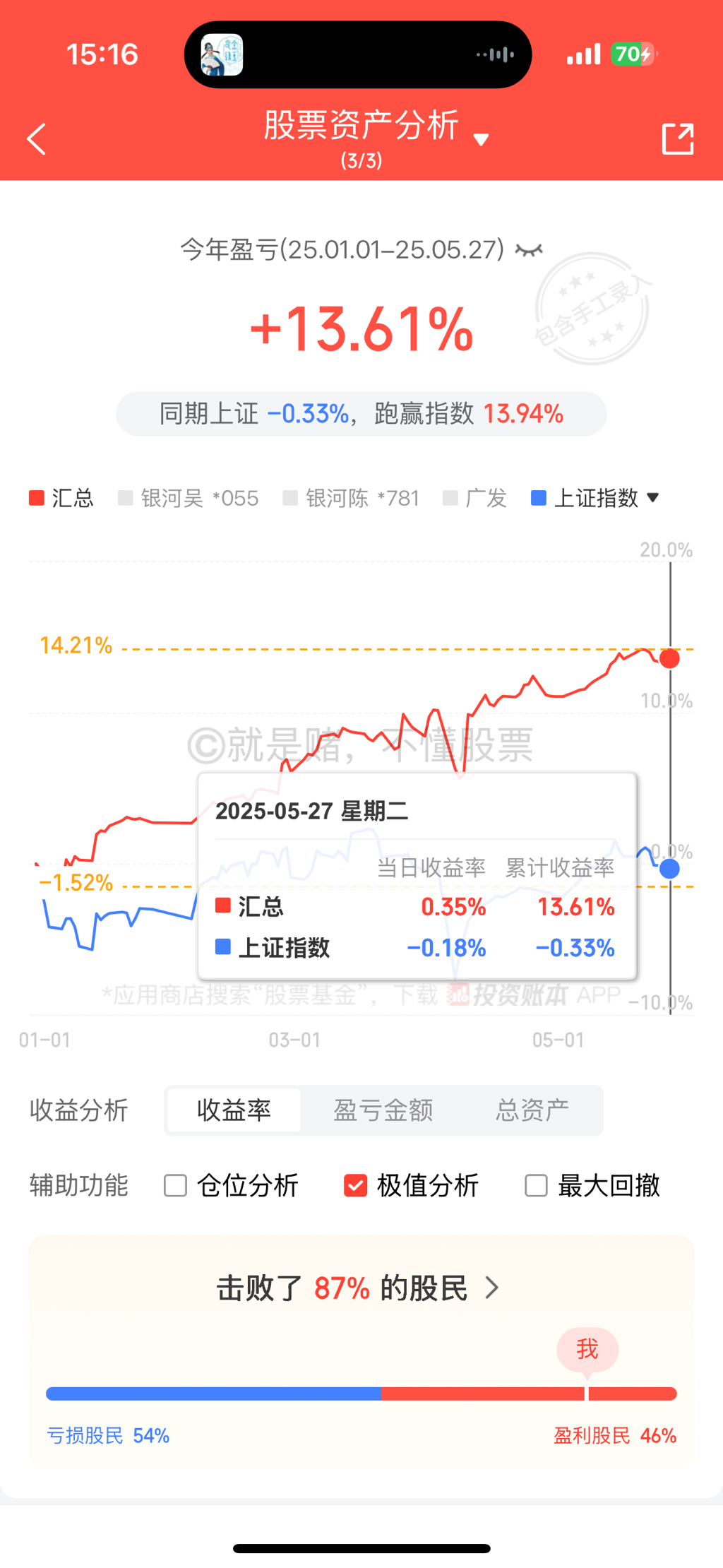 岭南之战以后,现在稳的一逼,虽然我还是会有仓位过重的操作,比如最多的仓位是40%,不过足够安全。