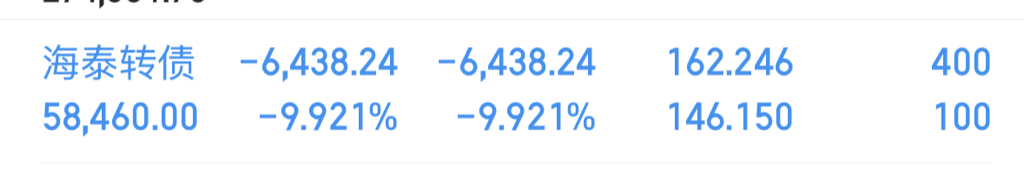 4月结束了,赚2.43%,但是感觉赚钱越来越难了,而且4月的最后一周的体验很不好。其实已经是非常非常强了,去年买的转债和我的持仓很像,今年我才2%,楼主都11%了,很厉害。我还在文科、美锦、鹰19、中装、三房这些低价垃圾债里。厉害的,别太苛责自己。