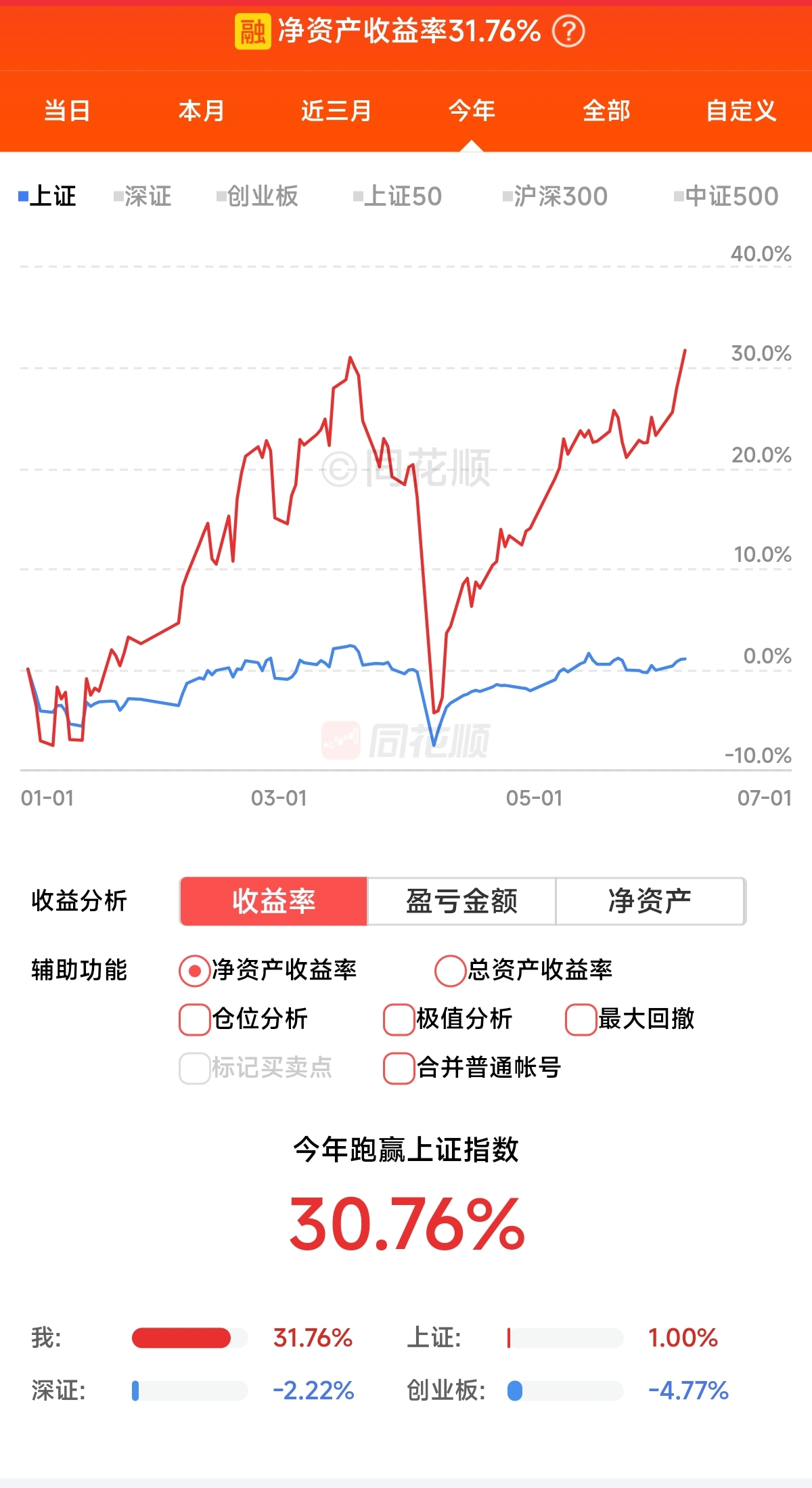 不得不感叹,你有这个天份,能经得起这么大的波动,这就是一种天份。剩下的就是如何走得更长了。只算券商App融资的话才一倍杠杆,还能接受。当然波动不能跟保安和绿茶两位大哥比,那种我也受不了。24年1月份波动我也有点受不了,还好靠小市值反弹及时了,不过我比较喜欢底位补仓,高位减仓却有点迟缓。