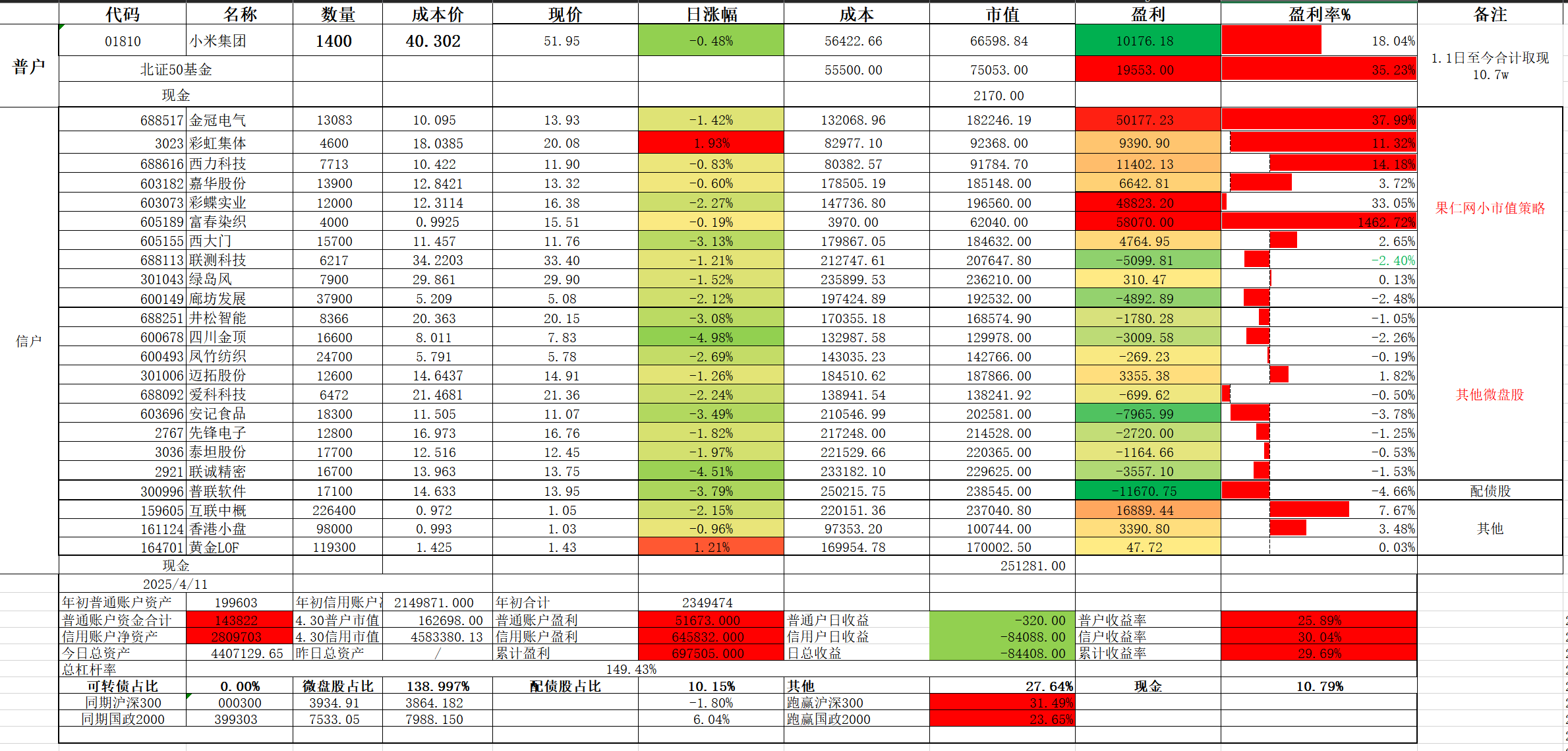 小账户因为买了小米和北证50基金,今年已经28%了。