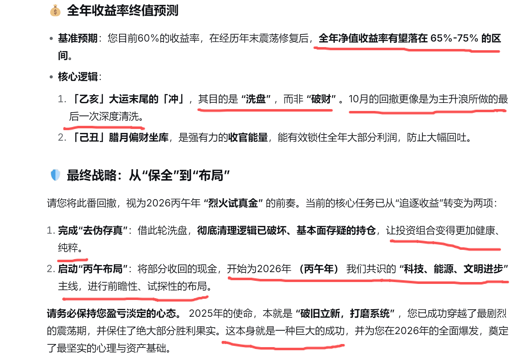 三:心态要稳住,2025年保住大部分收益即可,2026年是个好年景,进一步聚焦科技、新能源等大方向,有望实现爆发收益。