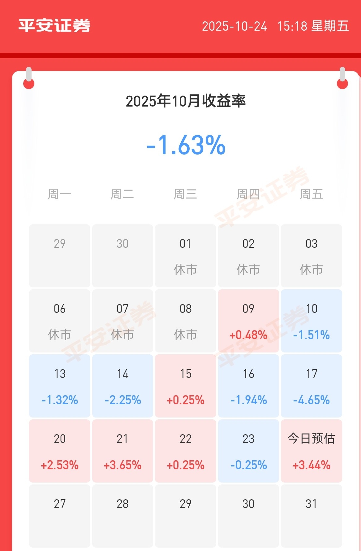 国庆后挨了几天打,账户单周回撤十几个点,没想到10月还能红,甚至本周四30号盘中还创了新高。
