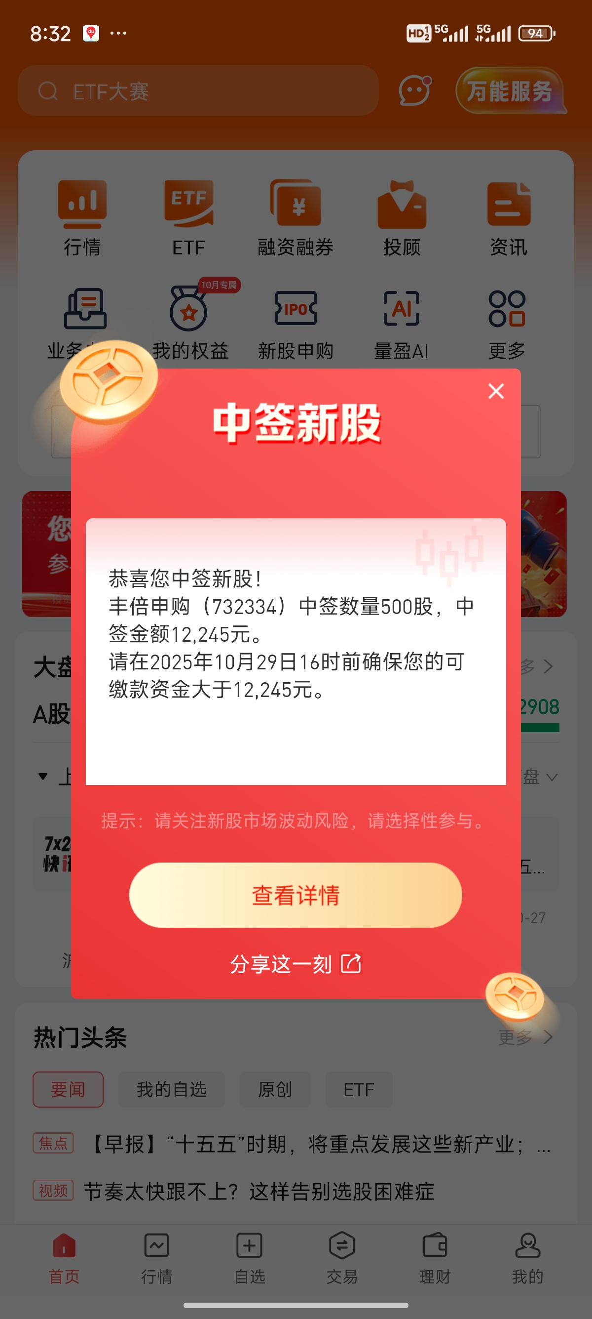 本周运气不错,不仅翻红,还中签了500股丰倍生物,不知道有多少肉,预计1-2w。
