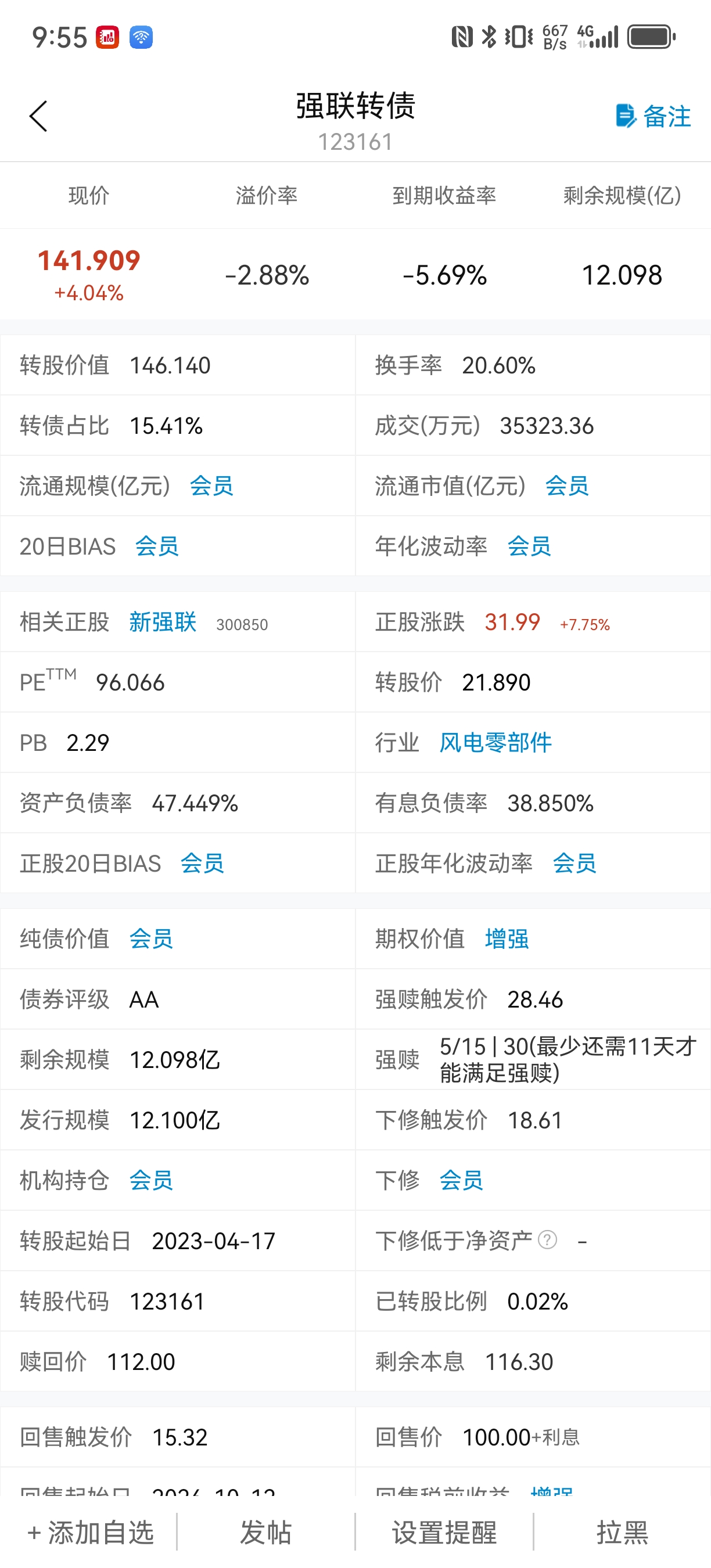 123243 严牌转债 129.449没买到,买了两份123161 强联转债 135.141,晕,真的是,希望低溢价可转债有足够的容错率和强壮型,不影响收益率