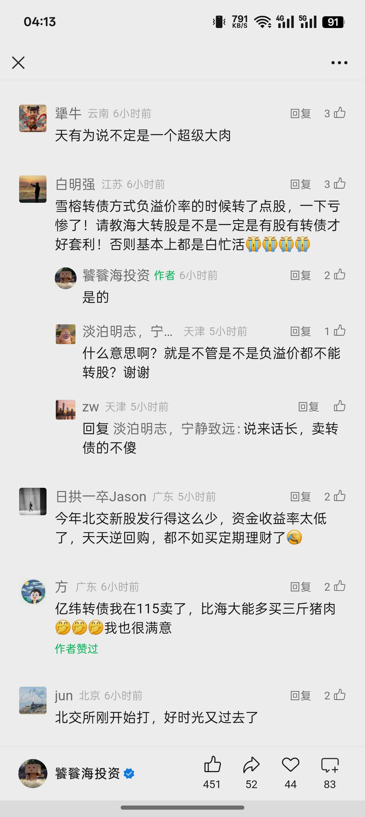 所以我们只能轮动可转债,因为我们和大股东站在一条线,还有其他债权人