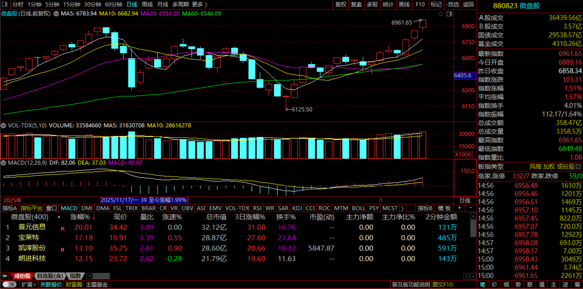 今天强势股调整,资金重回哑铃两端,微盘指数再创新高