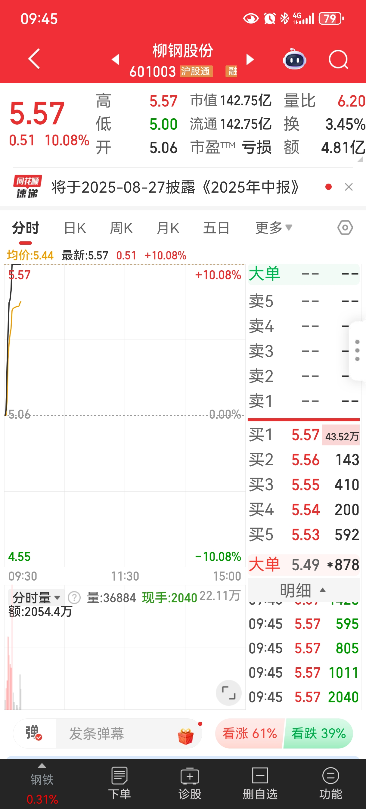 2025年第40个涨停板,柳钢股份涨停板截图留影纪念!