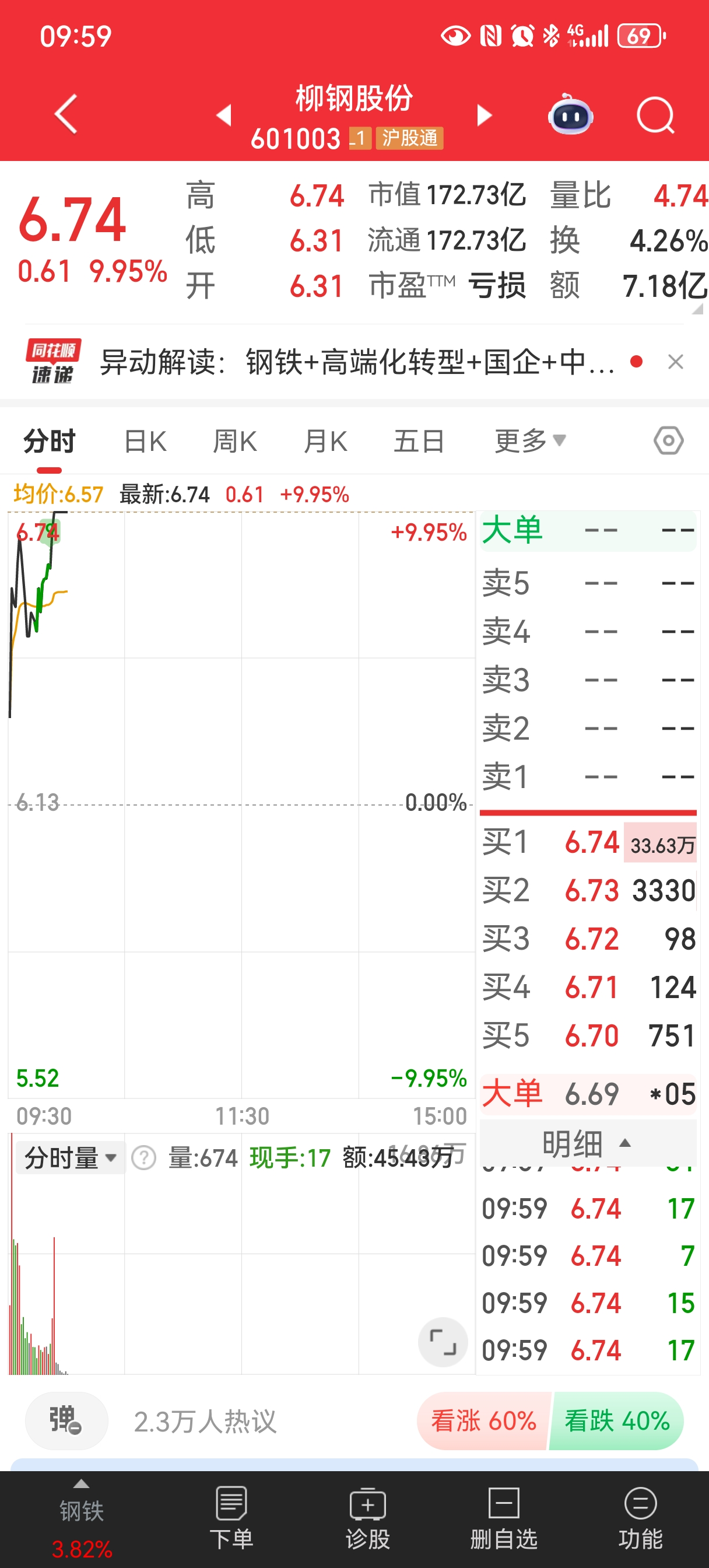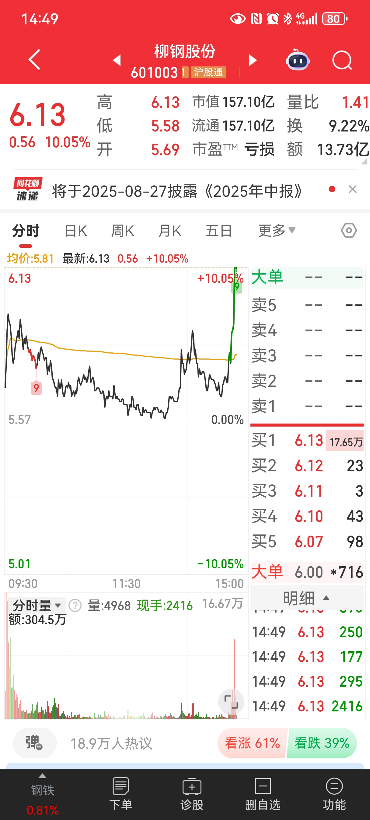 2025年第46个涨停板,柳钢股份,涨停板截图留影纪念!