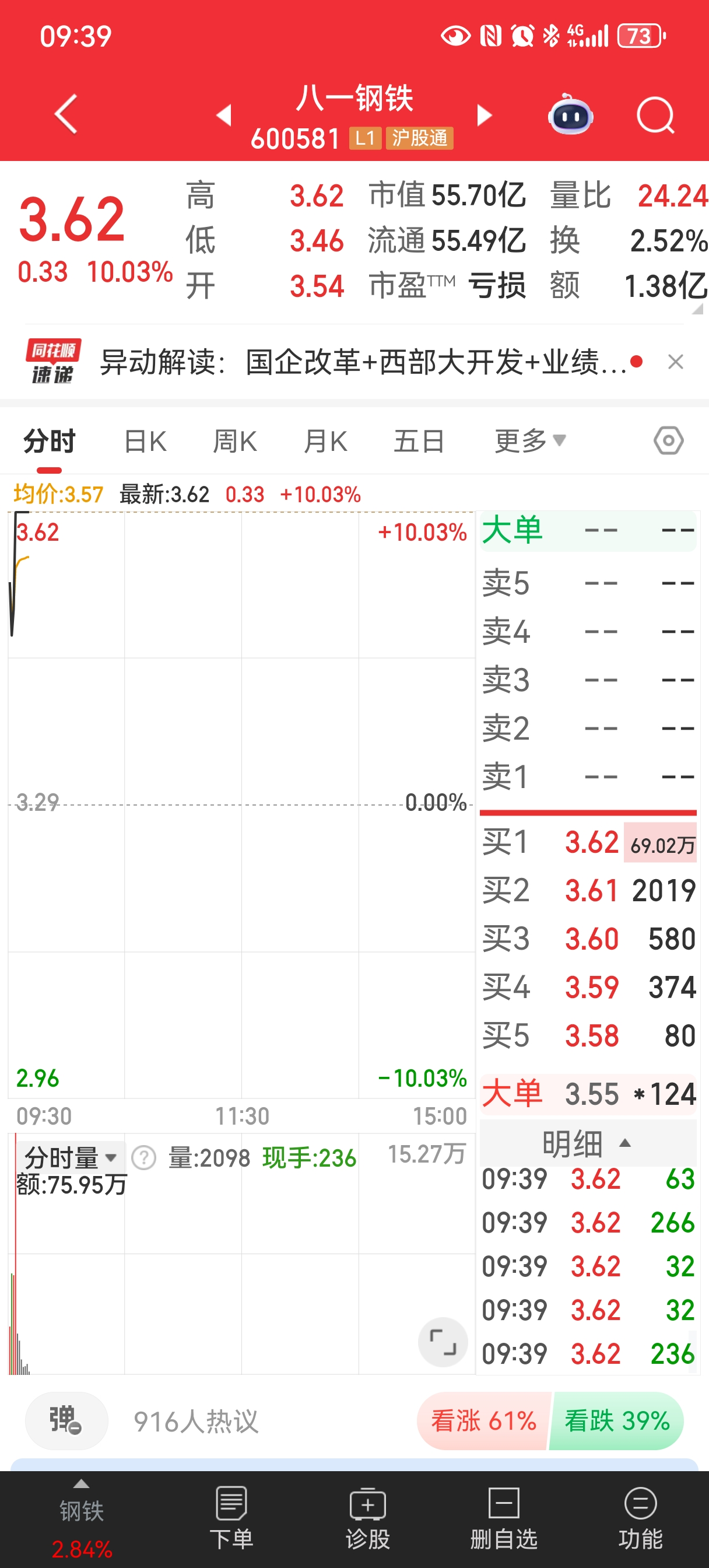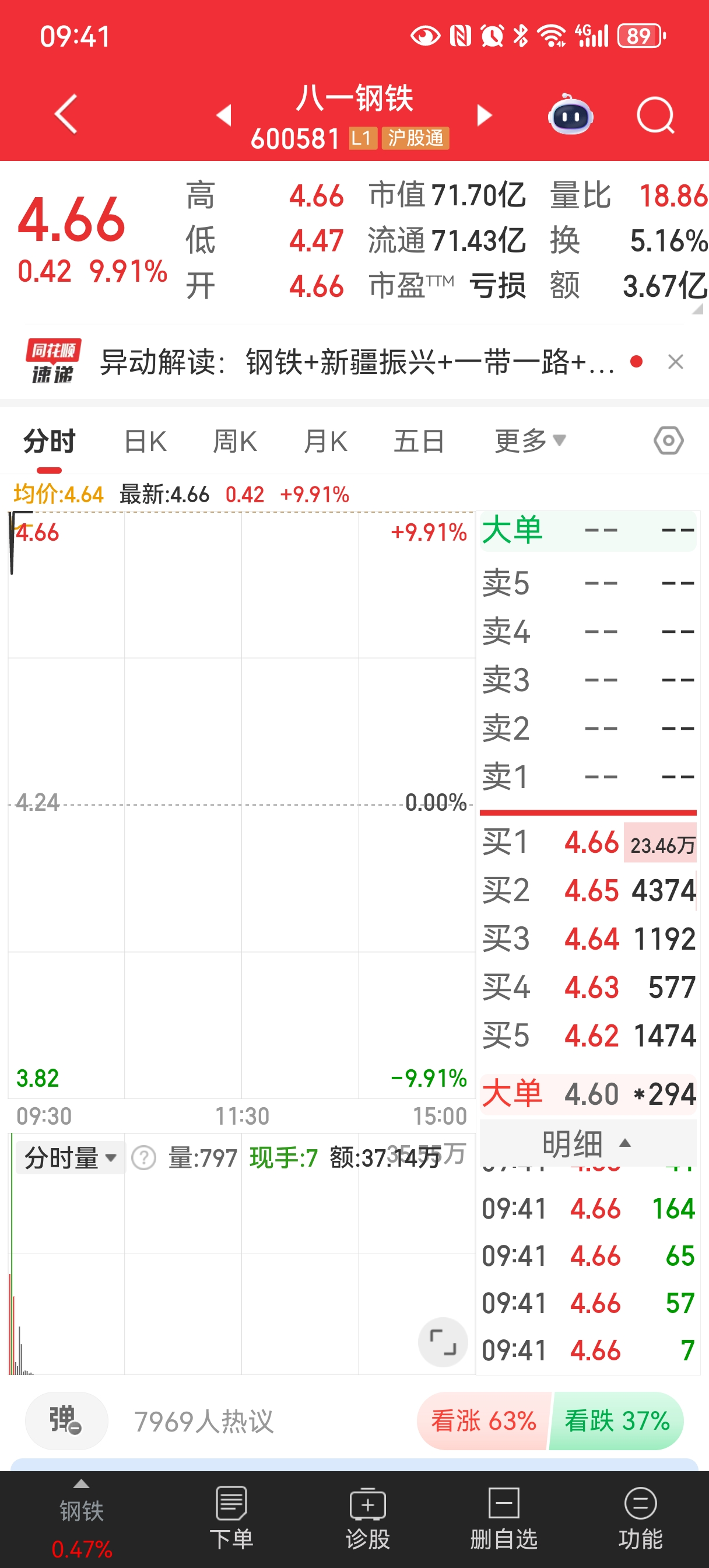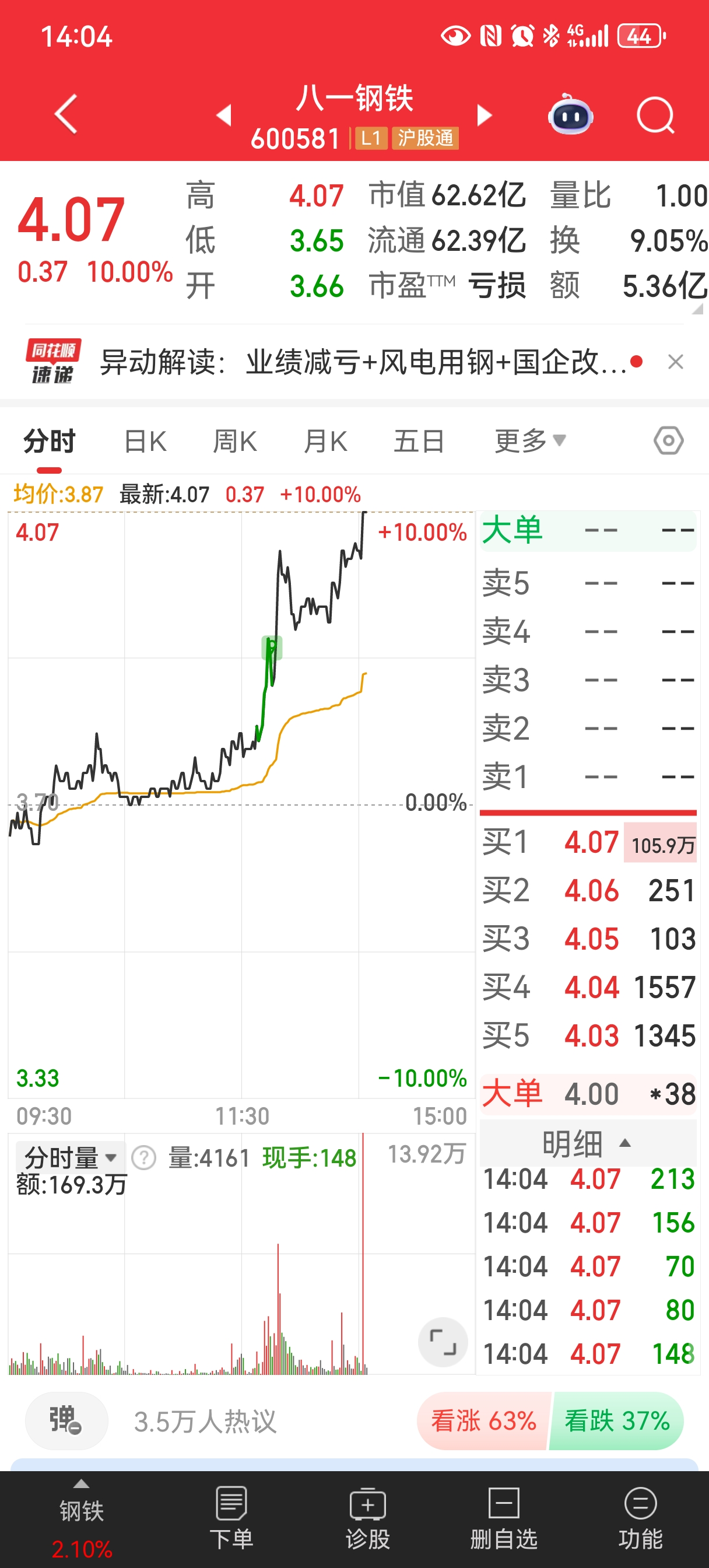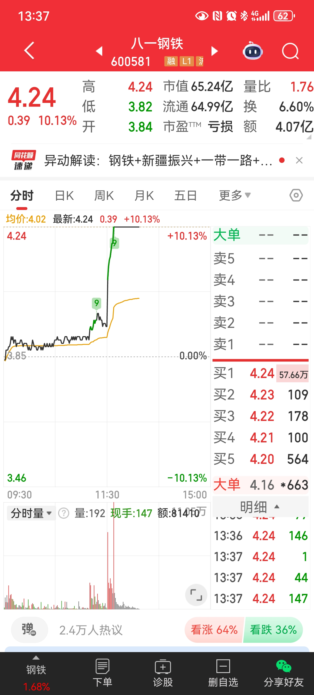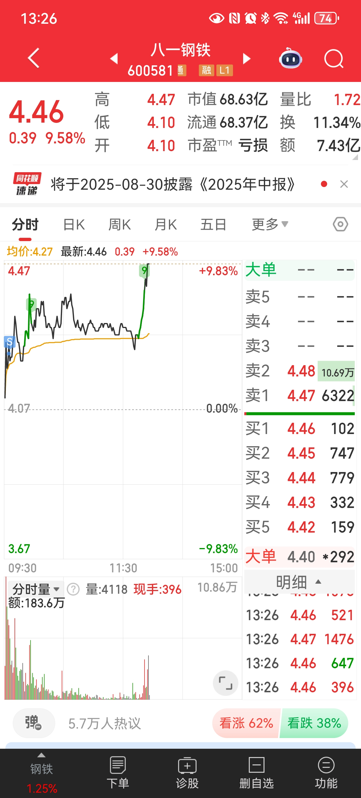 2025年第62个涨停板,八一钢铁,涨停板截图留影纪念!