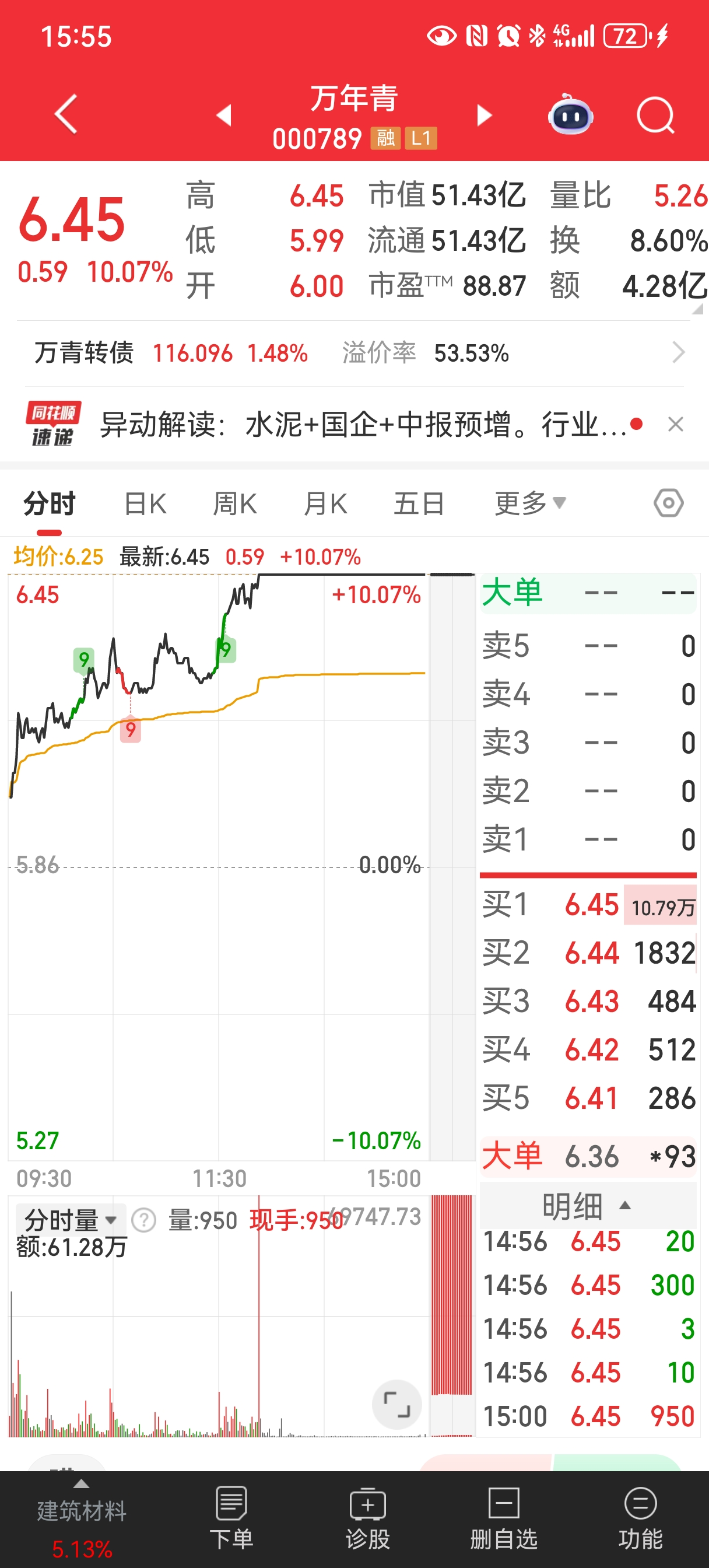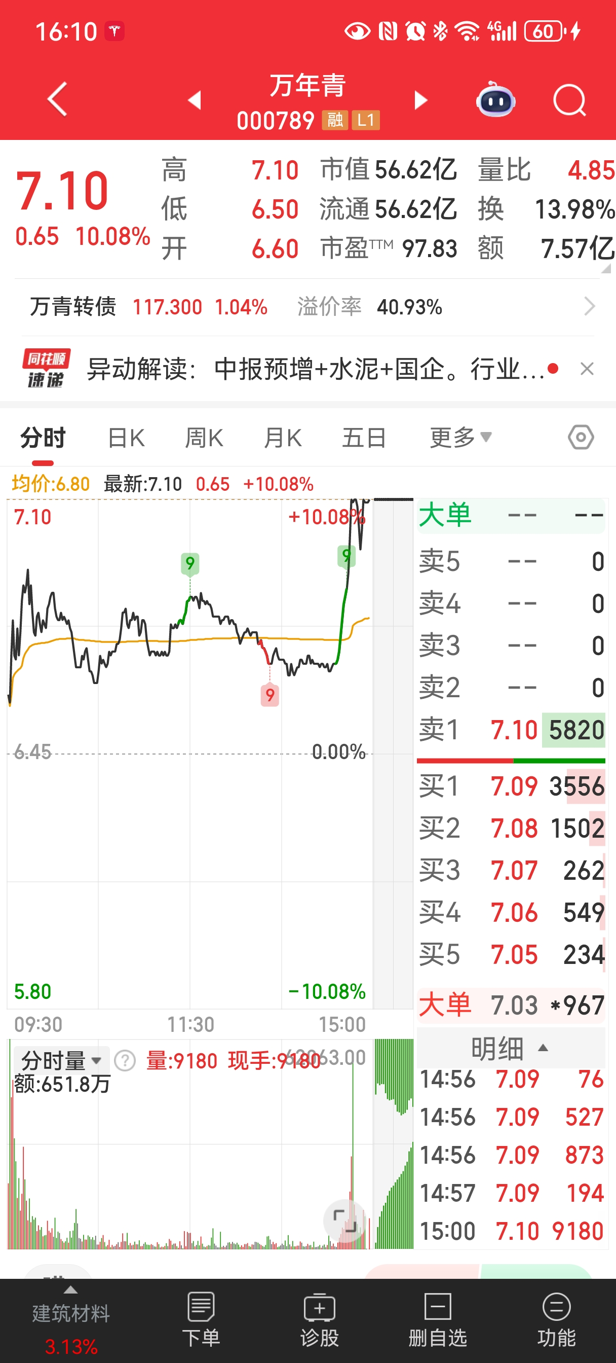 2025年第45个涨停板,万年青,涨停板截图留影纪念!